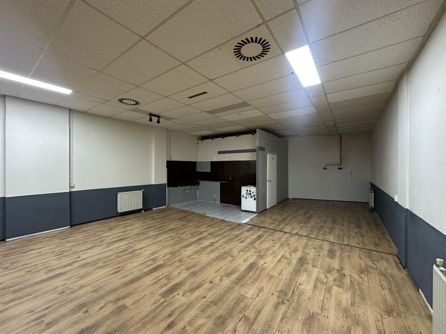 - Systeemplafond met inbouwarmaturen;