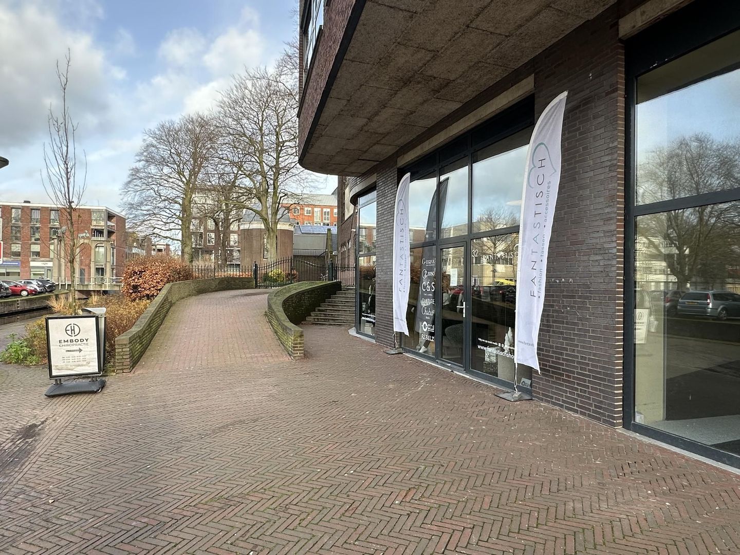 Gelegen aan de “Hoge Zijde”, midden in het centrum van Alphen aan den Rijn. Op een aanlooproute vanaf het parkeerterrein aan de Paradijslaan naar het stadshart alwaar de Mediamarkt, H&M, Intersport Twinsport, Specsavers en andere landelijke en plaatselijke retailers gevestigd zijn, alsmede het Rijnplein met het theater Castellum.