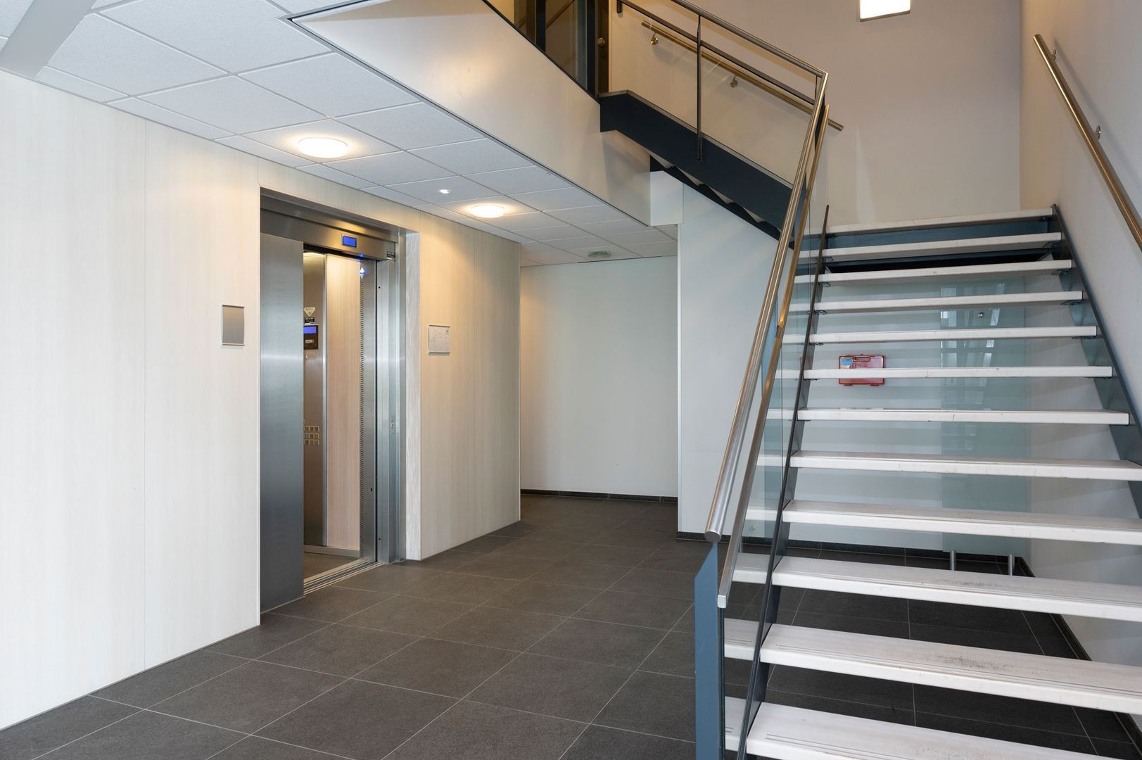 - Kantoorruimte op de verdieping is groot circa 421,80 m2 VVO, daarbij hoort 16 m2 toebedeelde algemene ruimte van de lobby beneden.