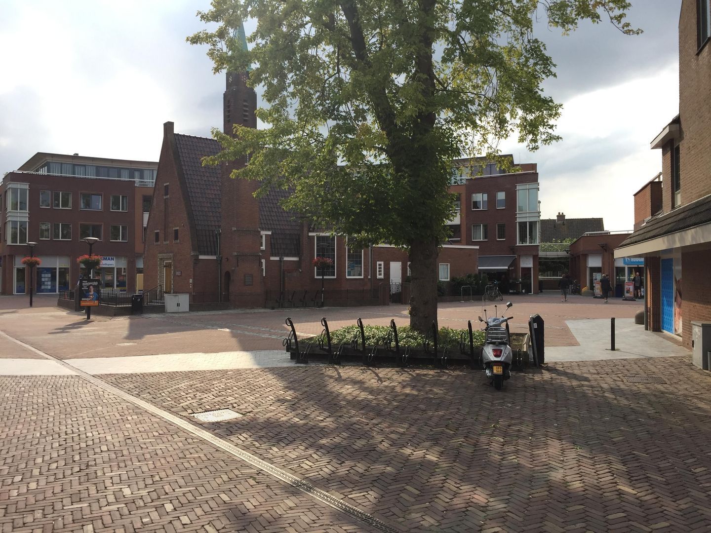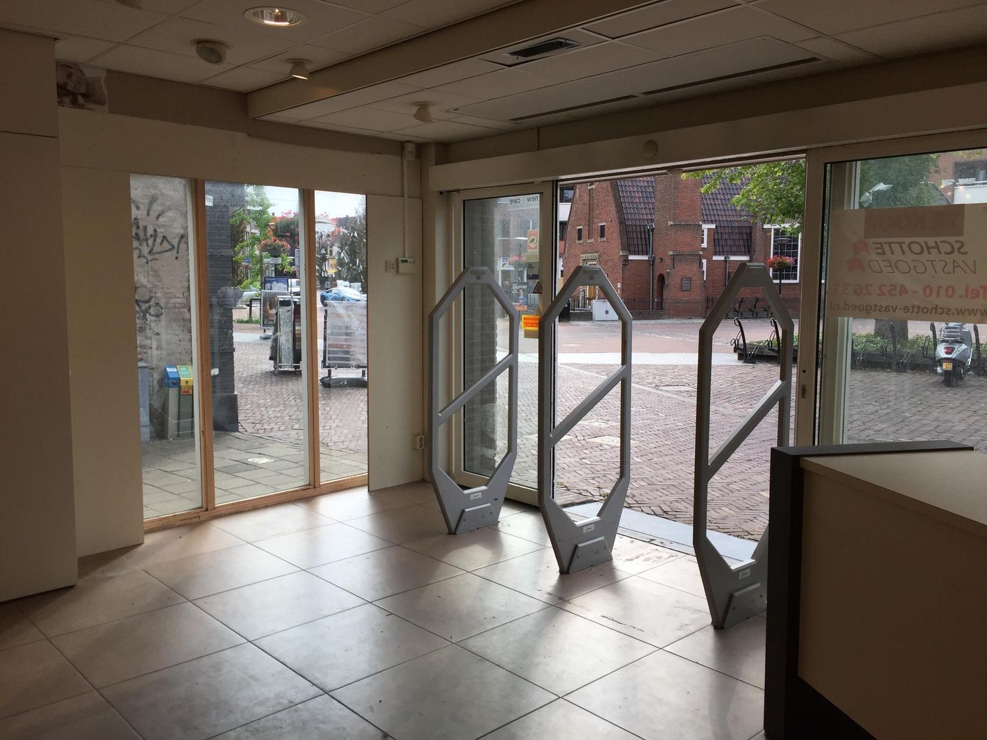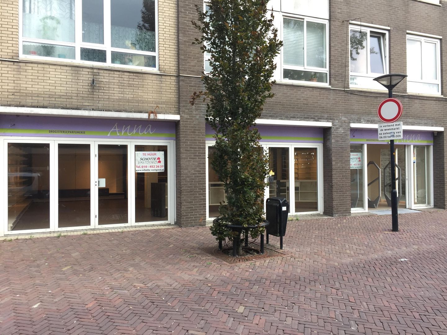 De winkelruimte grenst aan een plein waar elke zaterdag de markt plaats vindt.