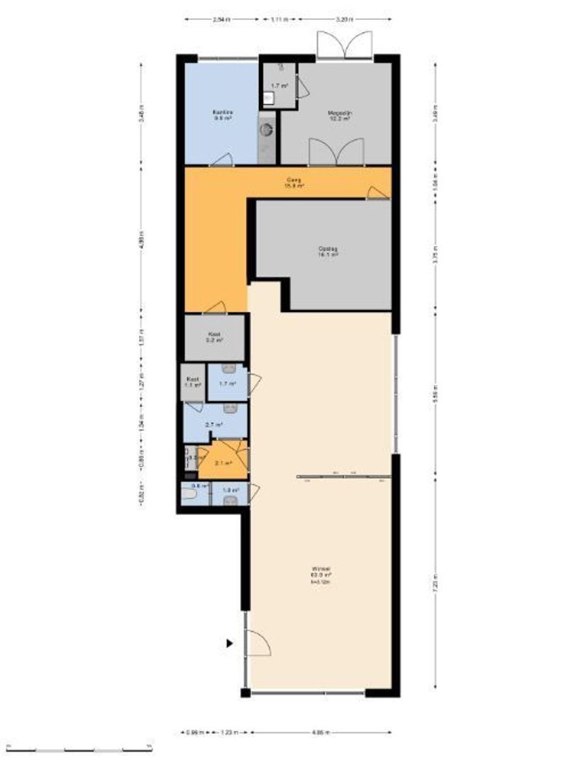 Het pand heeft een frontbreedte van ca. 7,25 meter.