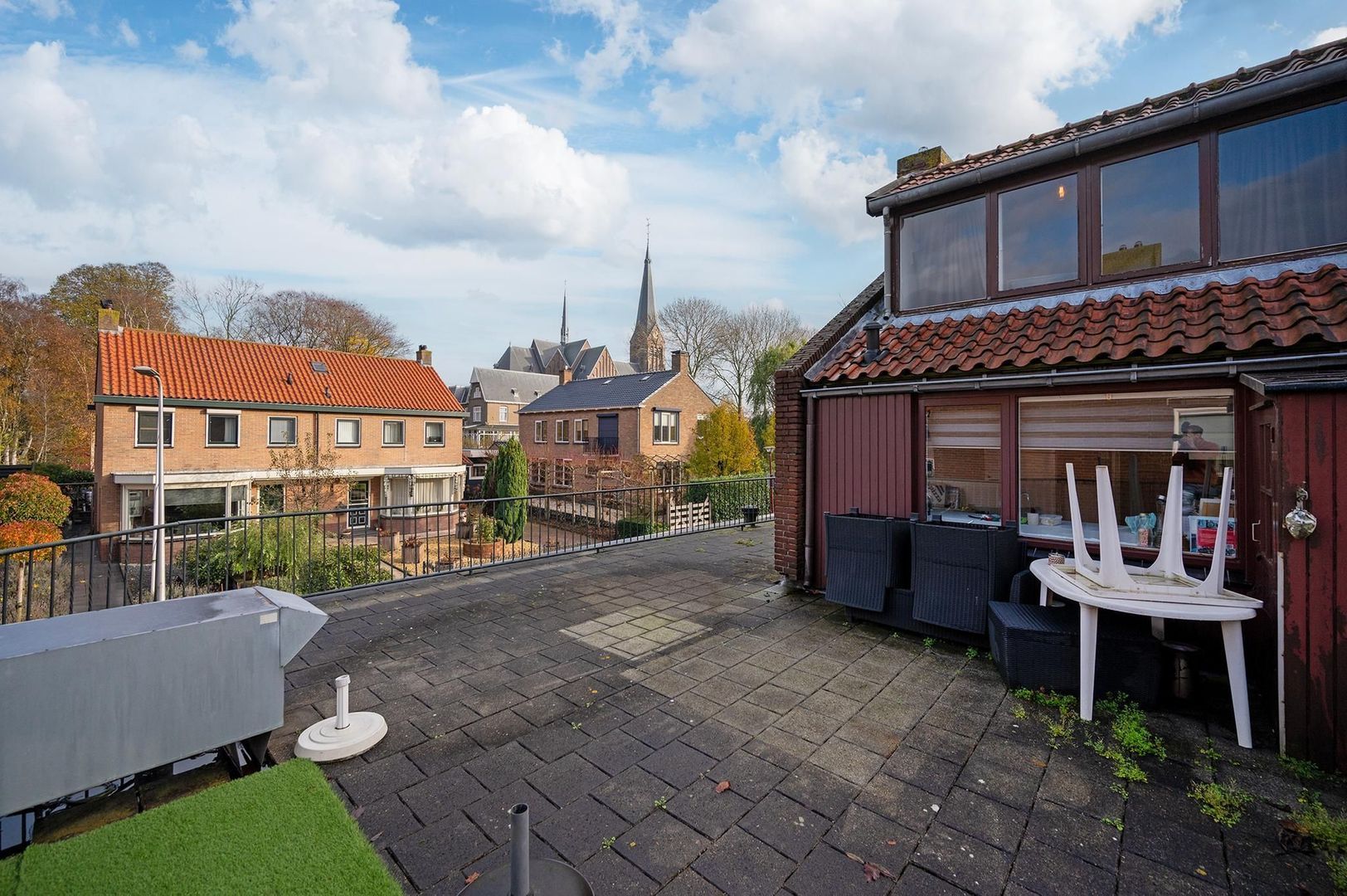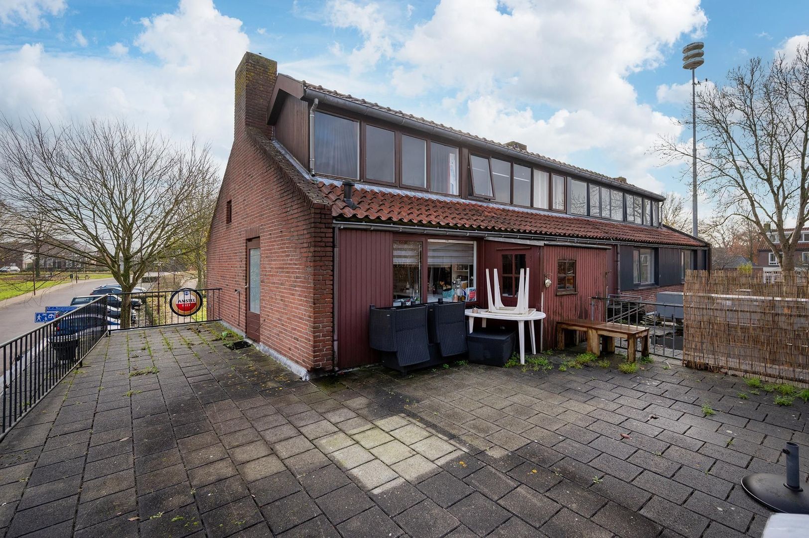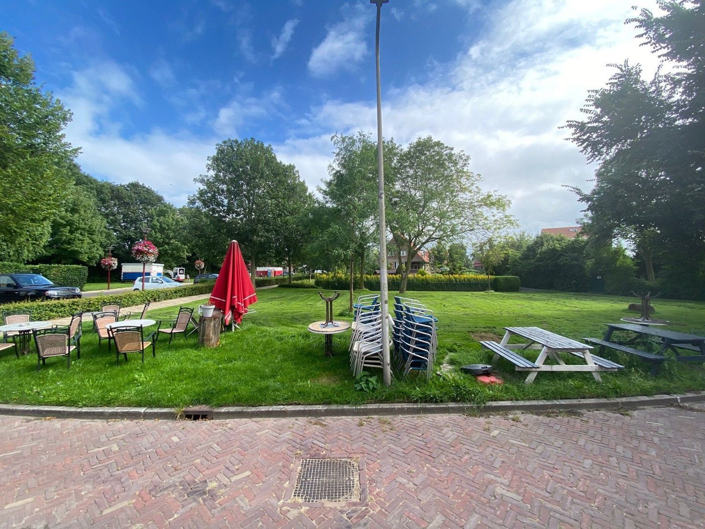 “Café Hiernaast” met aan de voorzijde een terras met vrij uitzicht.