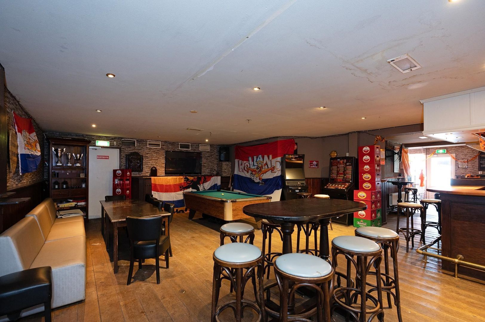 een grote bar, rookruimte, 2 dartbanen en een biljart. Aan de voorzijde van de onderneming
