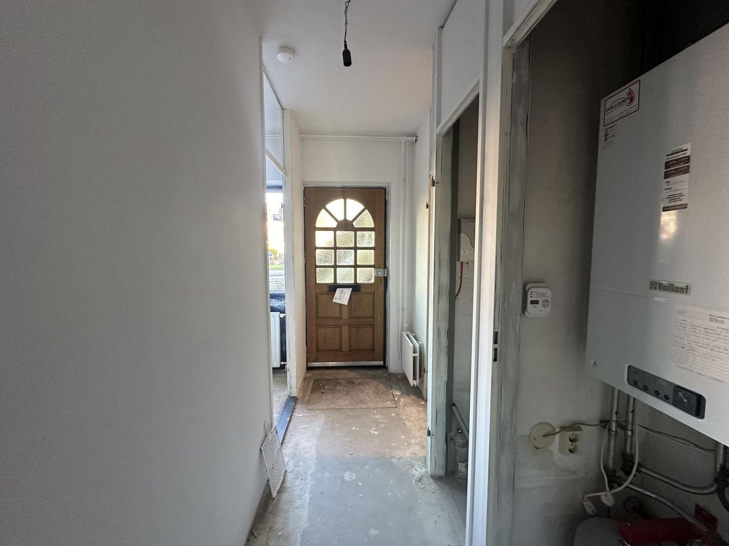 Hal/entree met meterkast en cv-ruimte, toegang tot de ruime slaapkamer aan de voorzijde en de badkamer. De badkamer is voorzien van een douche, wastafelmeubel, aansluiting voor de wasmachine/droger en toilet. Aan het einde van de hal bevindt zich de lichte woonkamer met open keuken. Tot slot grenst aan de woonkamer een tuin met berging en achterom.