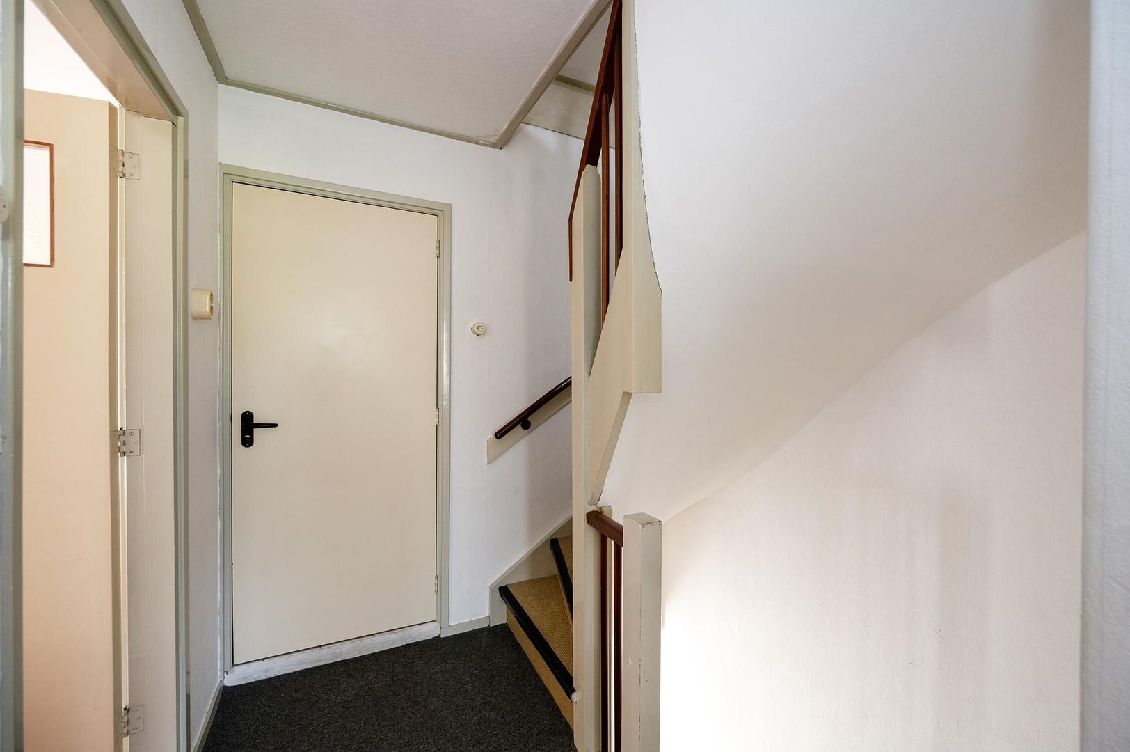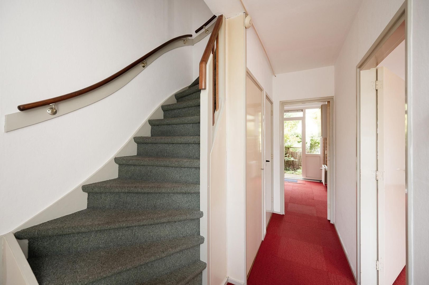 Binnenkomst is in de ruime hal. De hal geeft toegang tot de meterkast, kelderkast, het toilet, de trap naar de eerste verdieping, de toegang tot de woonkamer en de keuken.