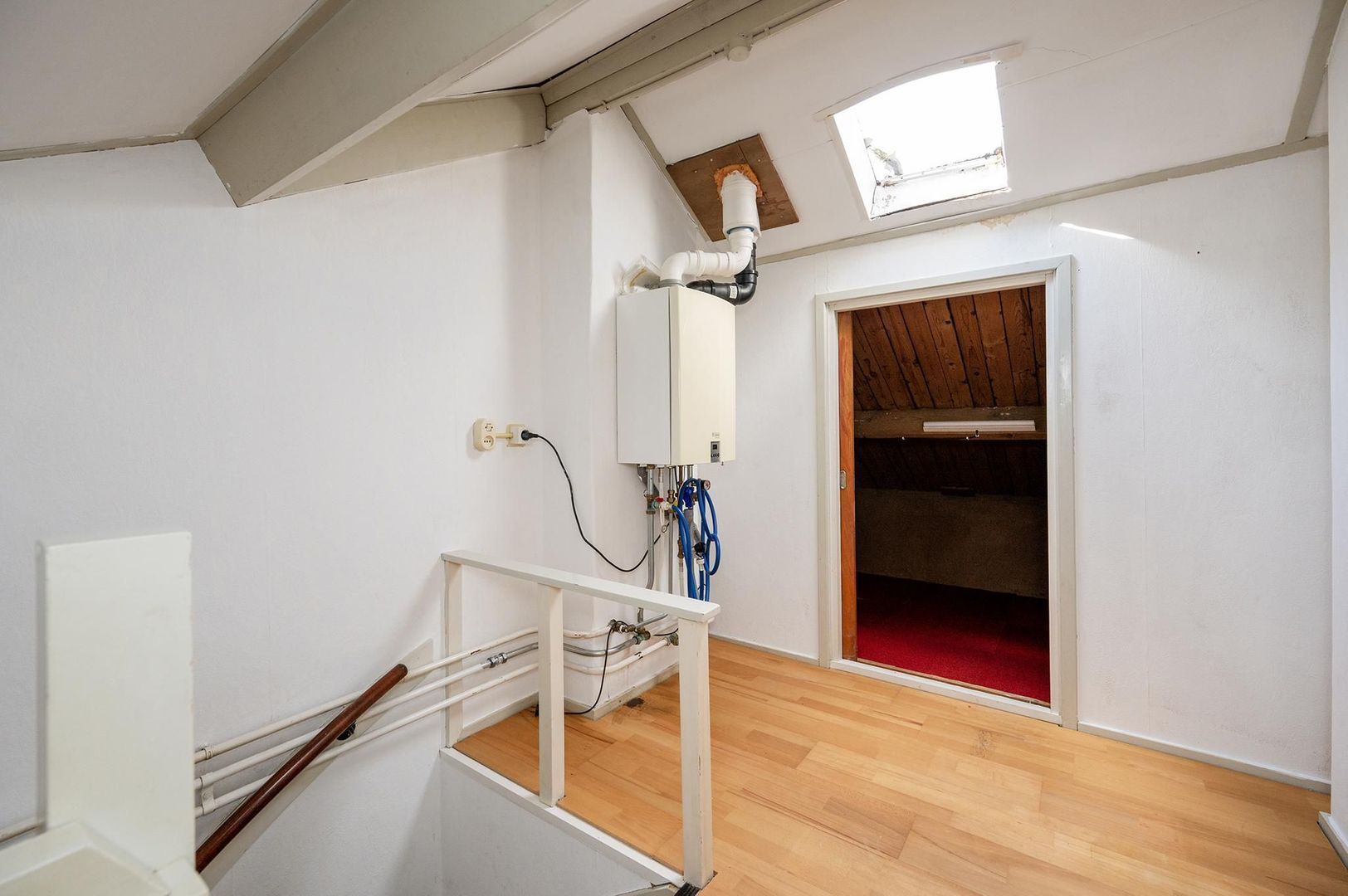 Via de overloop komt u op de zolder van de tweede verdieping. Hier bevinden aansluitingen voor de wasmachine en droge en een dakraam dat zorgt voor veel lichtinval. Er is tevens opbergruimte onder de schuine dakdelen.