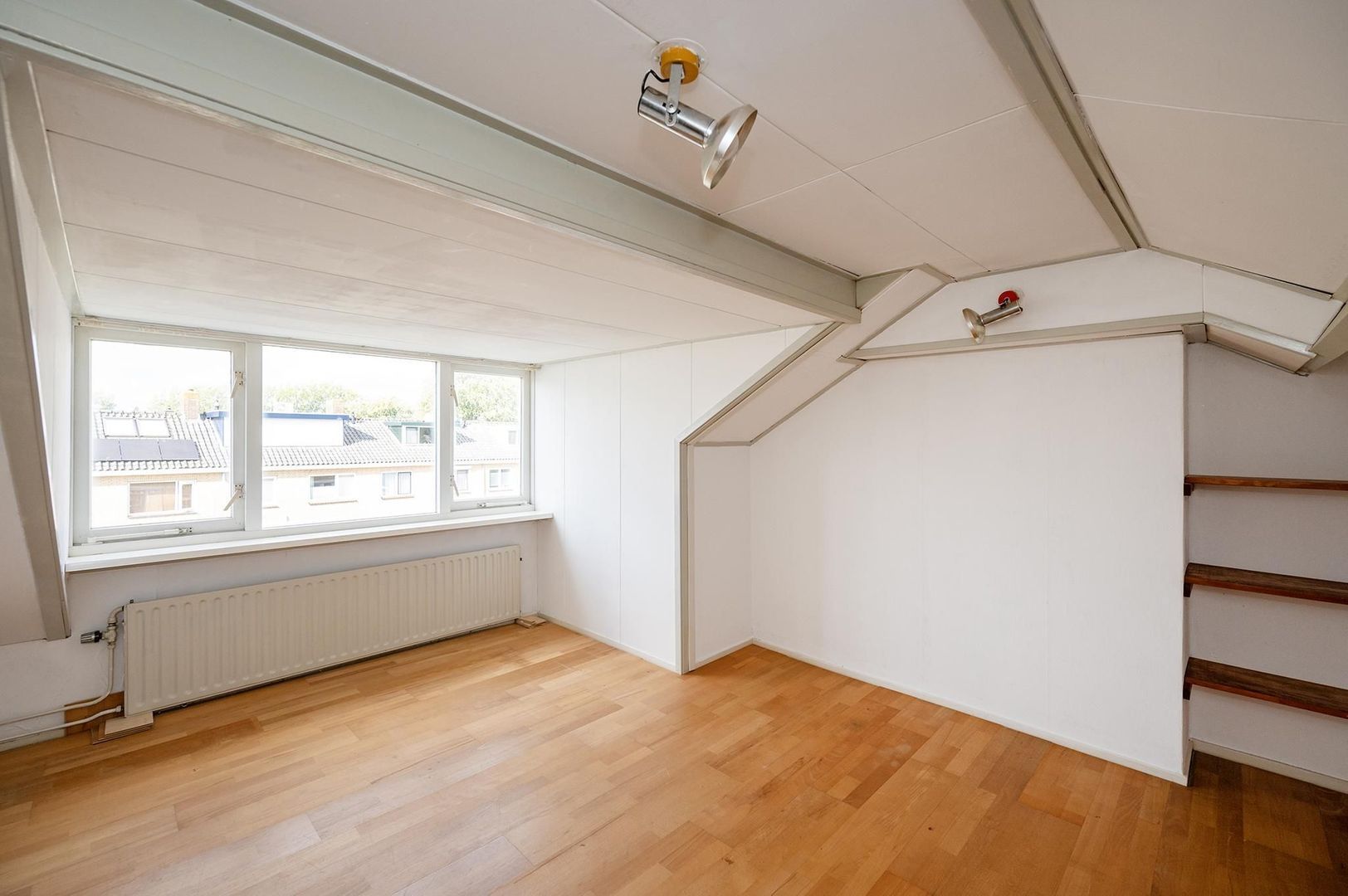 De slaapkamer op deze verdieping is ruim en licht door de grote dakkapel aan de achterzijde, die vrijwel de volledige breedte van de kamer beslaat.