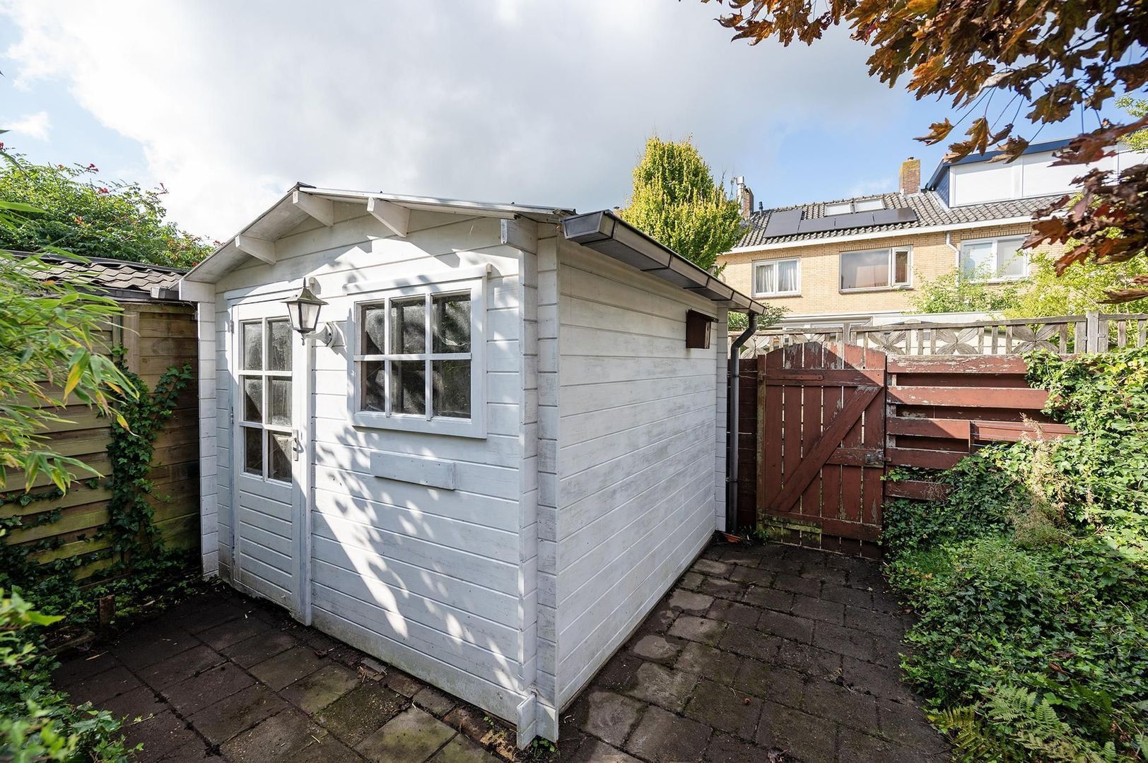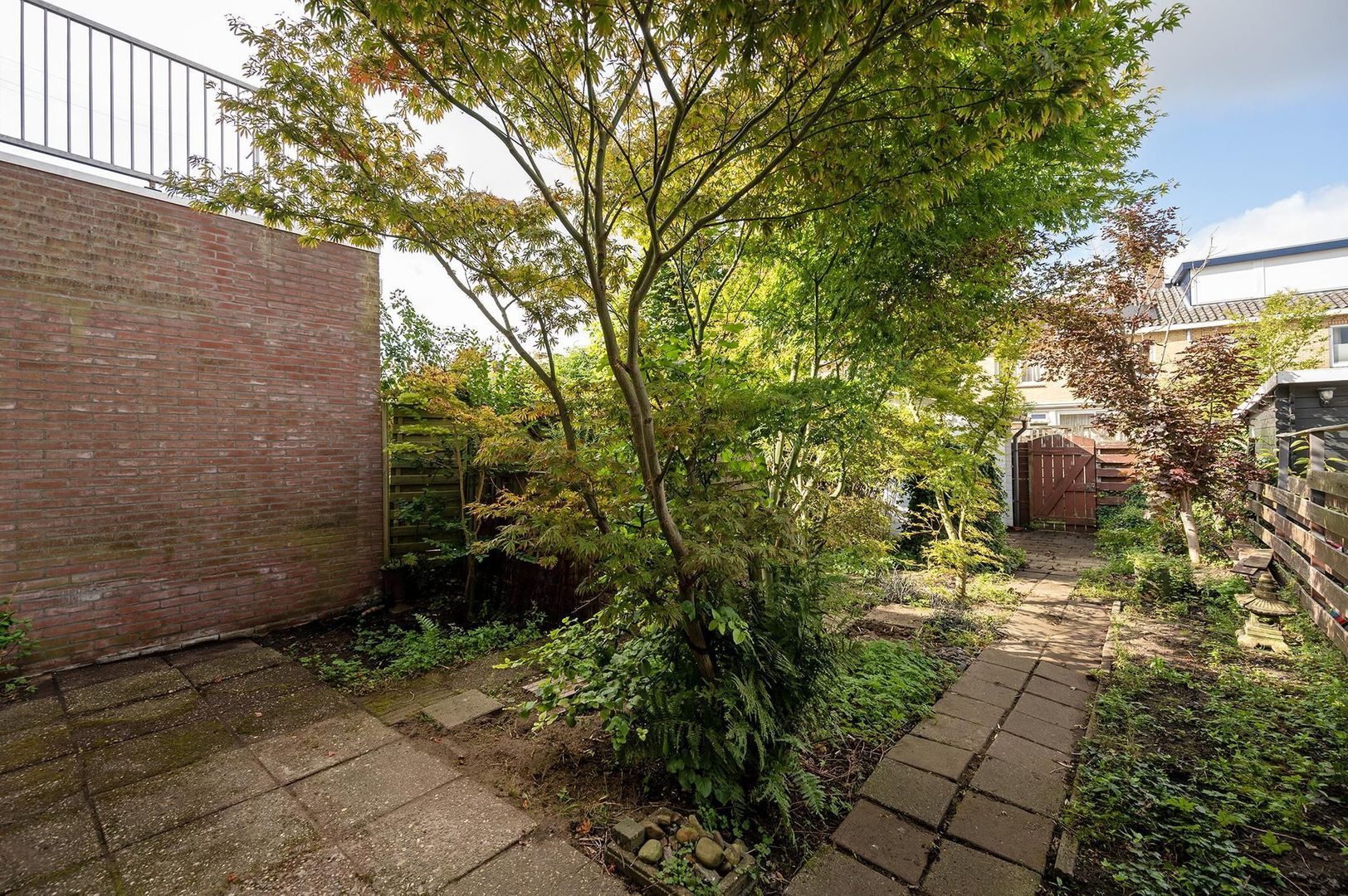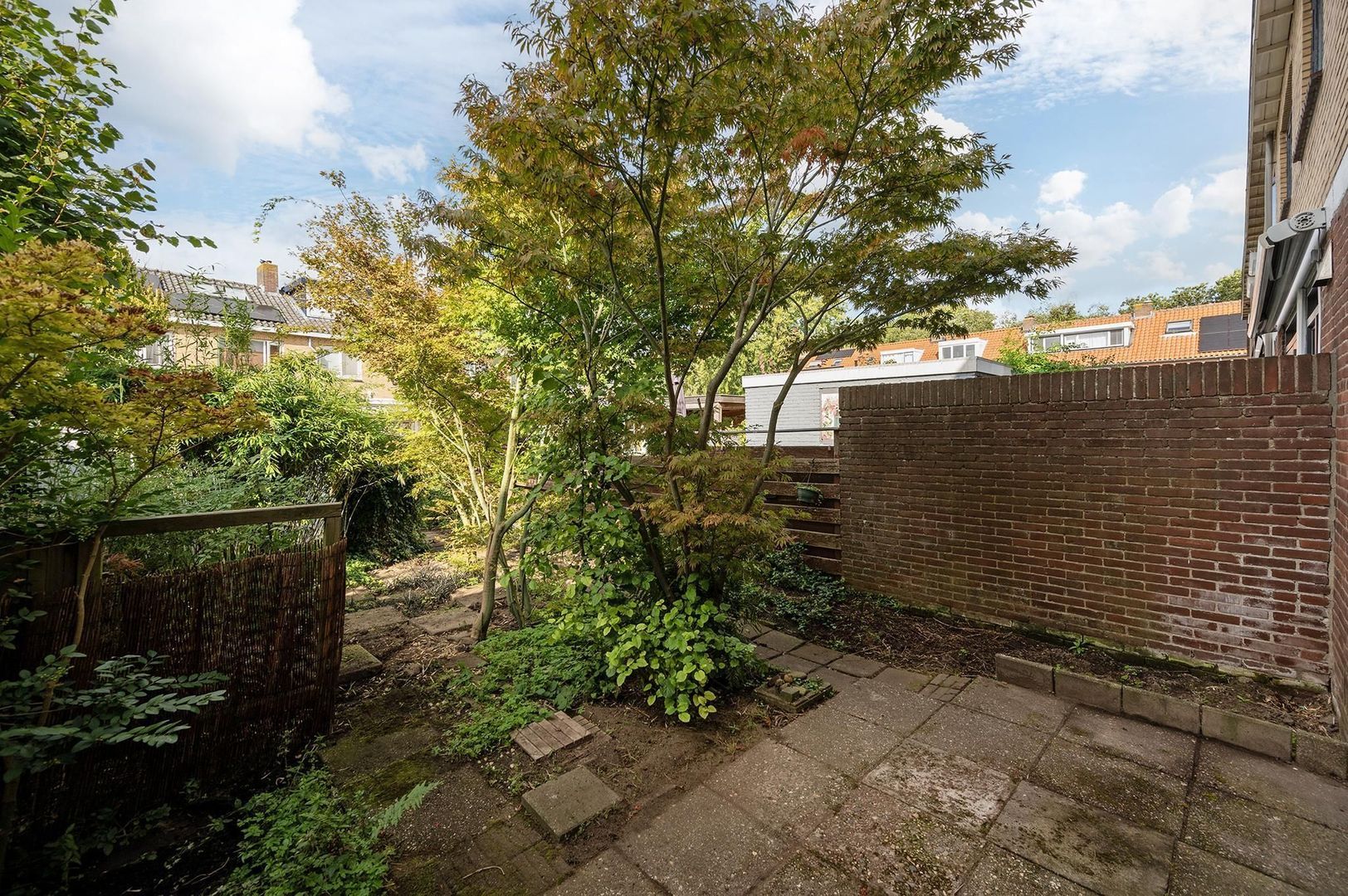 De doorzonwoonkamer heeft grote raampartijen waardoor veel daglicht. Via de keuken vindt u de deur naar de diepe achtertuin, gelegen op het westen, waardoor u vanaf de middag tot in de avond van de zon kunt genieten. De tuin beschikt over een houten berging met voldoende opbergruimte. Daarnaast is er een achterom.