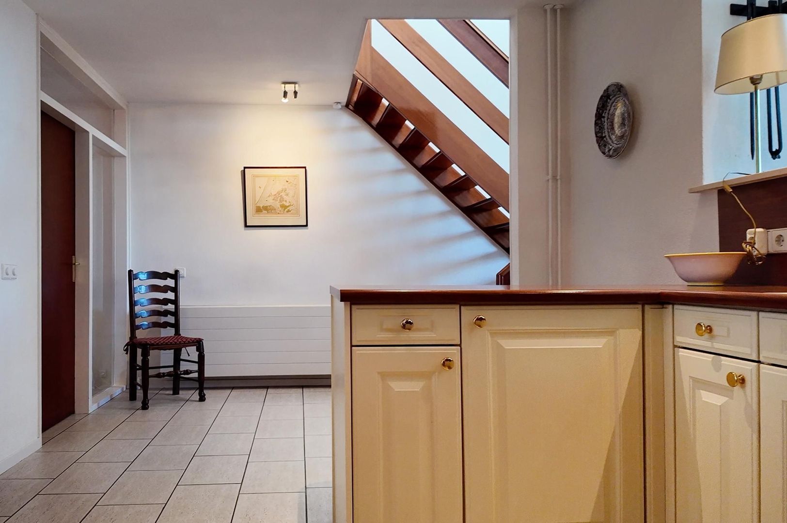 Inpandige garage, toilet met fonteintje en werk-/slaapkamer aan de voorzijde.