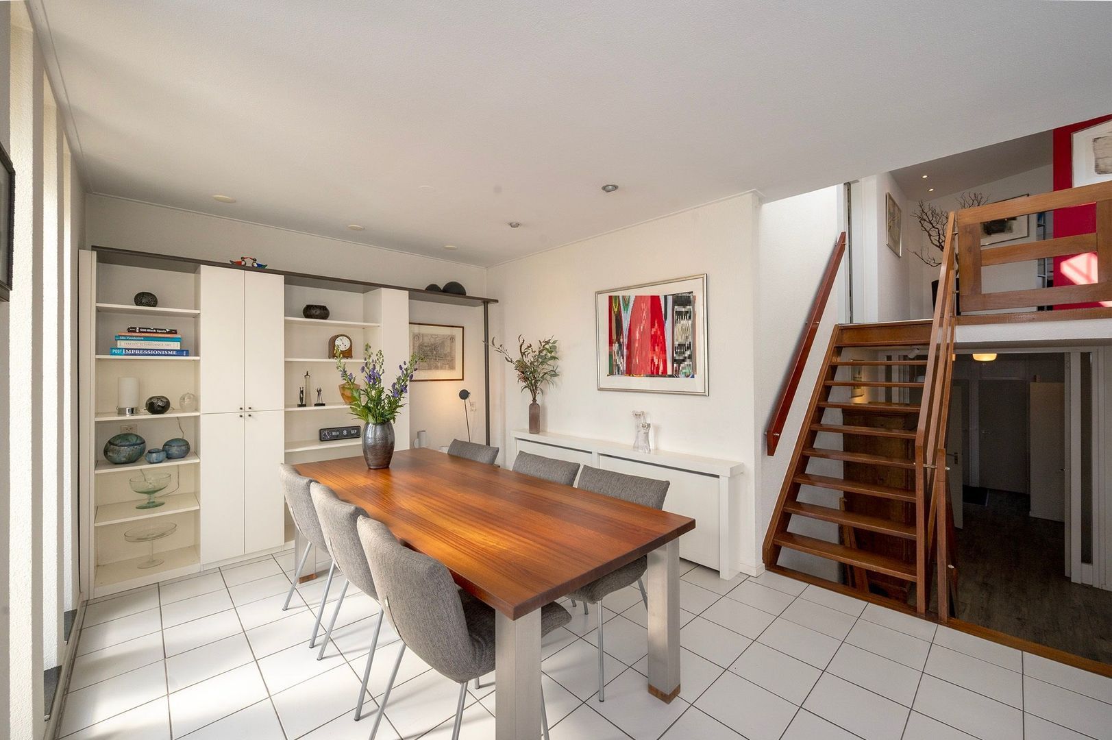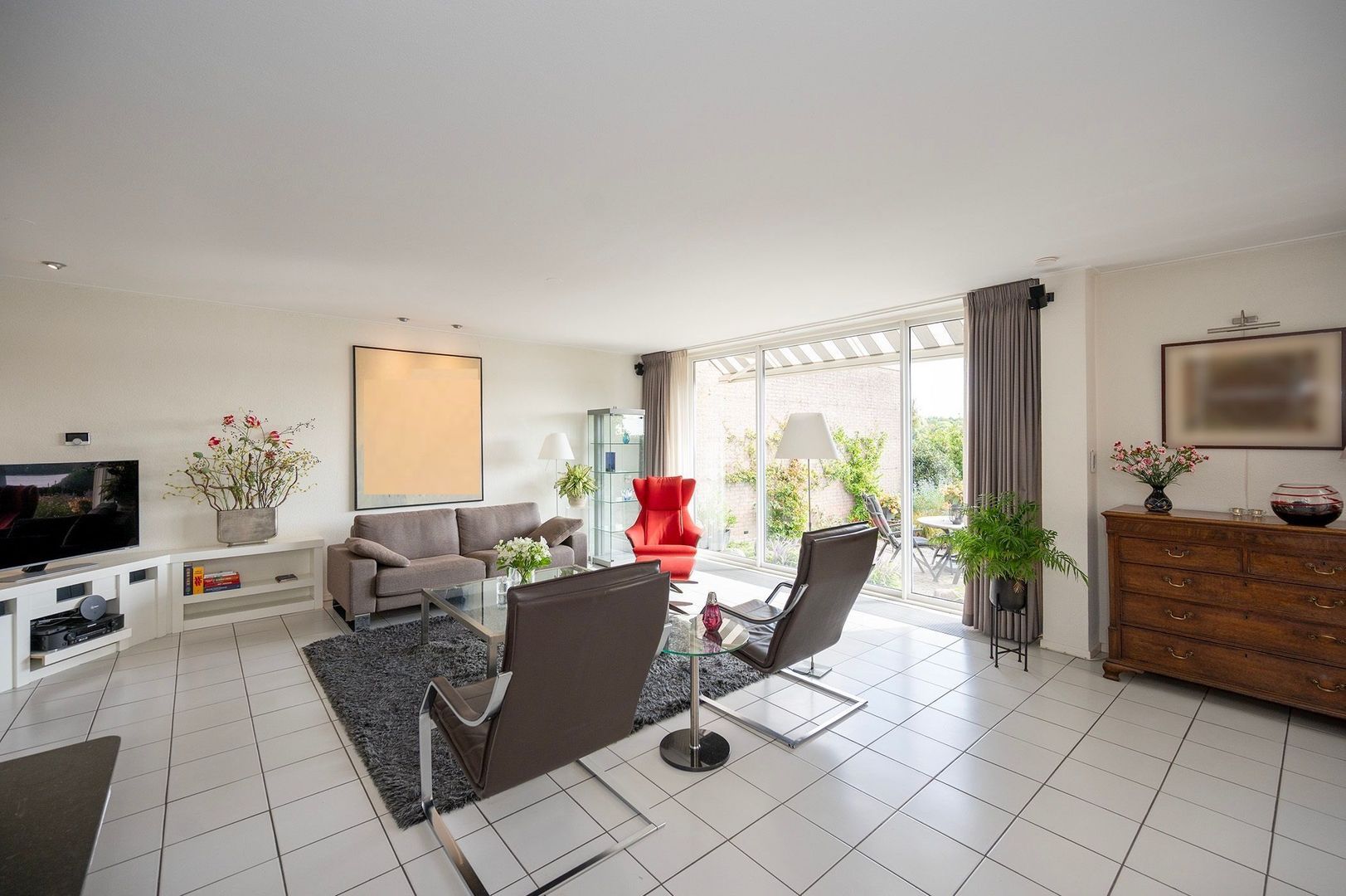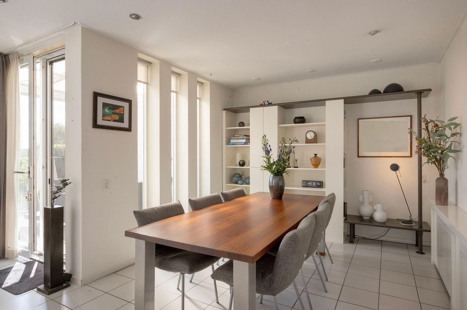 De royale en lichte woonkamer wordt gekenmerkt door grote raampartijen, een sfeervolle open haard en een schuifpui naar het overdekte terras. Dankzij de terrasverwarmer kunt u hier het hele jaar door genieten van het prachtige uitzicht over de tuin en de Zegerplas.
