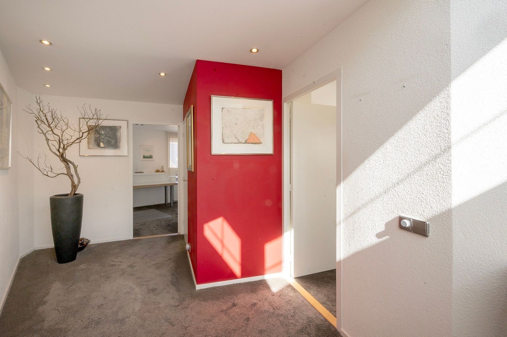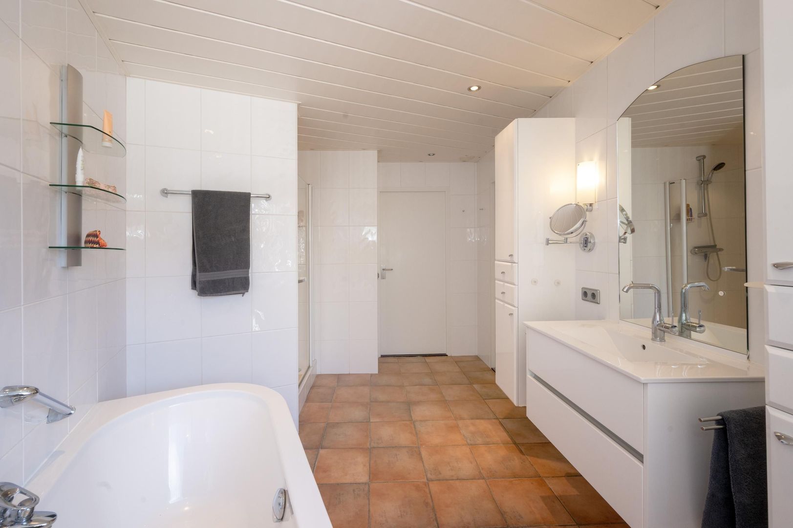 De overloop is heerlijk licht dankzij de grote ramen, die recent zijn vervangen door onderhoudsarme kunststof kozijnen met isolerend dubbel glas. Vanuit hier zijn drie ruime slaapkamers bereikbaar, waarvan één is voorzien van airconditioning voor extra comfort tijdens warme zomerdagen. De badkamer beschikt over een ingebouwde speaker en is uitgerust met douche, wastafelmeubel en radiator. Daarnaast is er op de overloop een separaat toilet aanwezig.