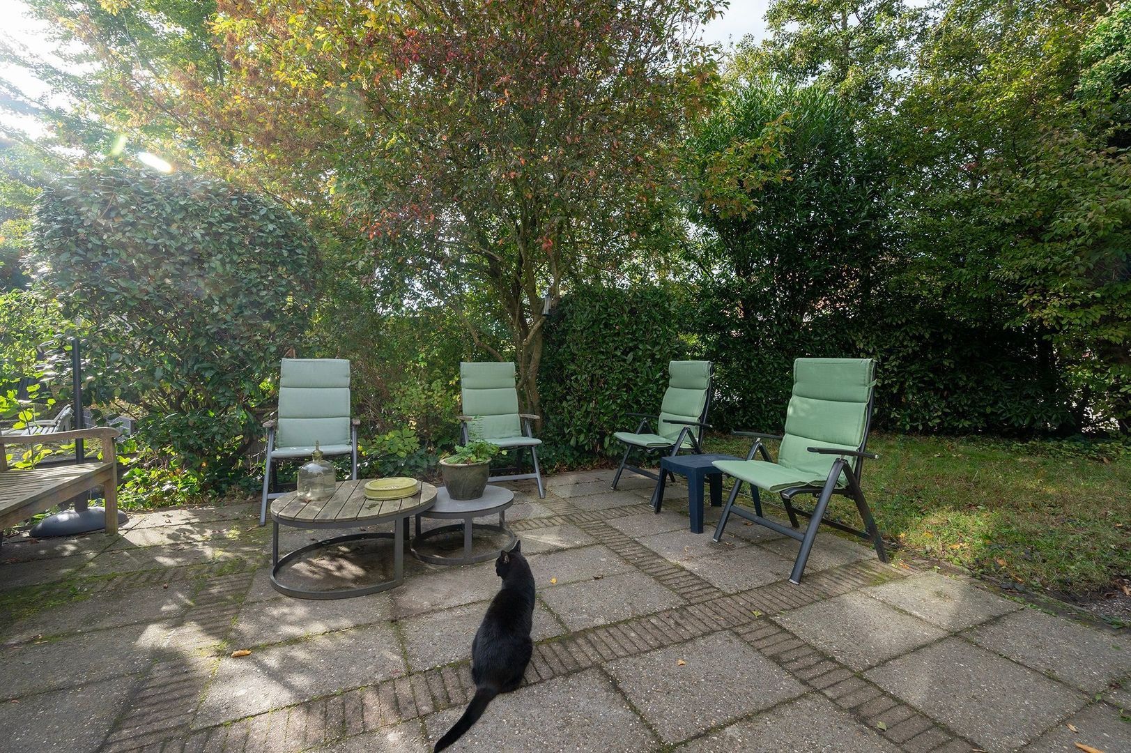 De tuin van Bergmolen 28 is mooi volgroeit en biedt volop ruimte en privacy. Dankzij de bijzondere driehoekige vorm is de buitenruimte praktisch en sfeervol ingedeeld, met meerdere terrassen en zitplekken op verschillende momenten van de dag.