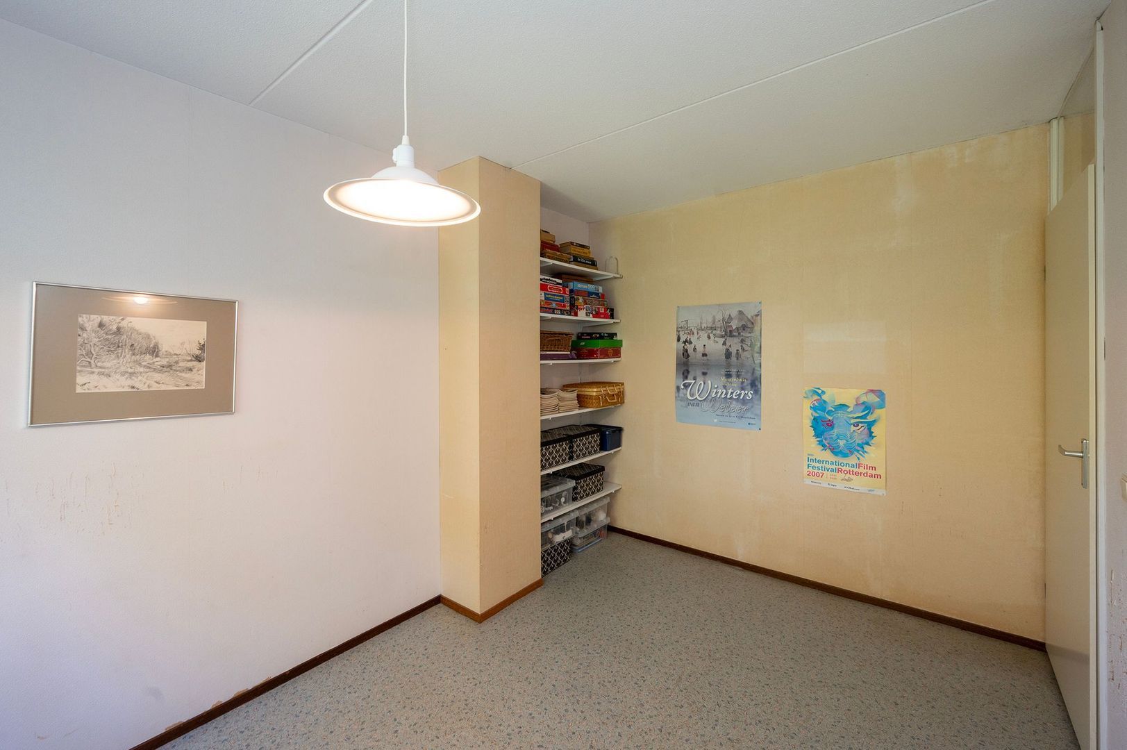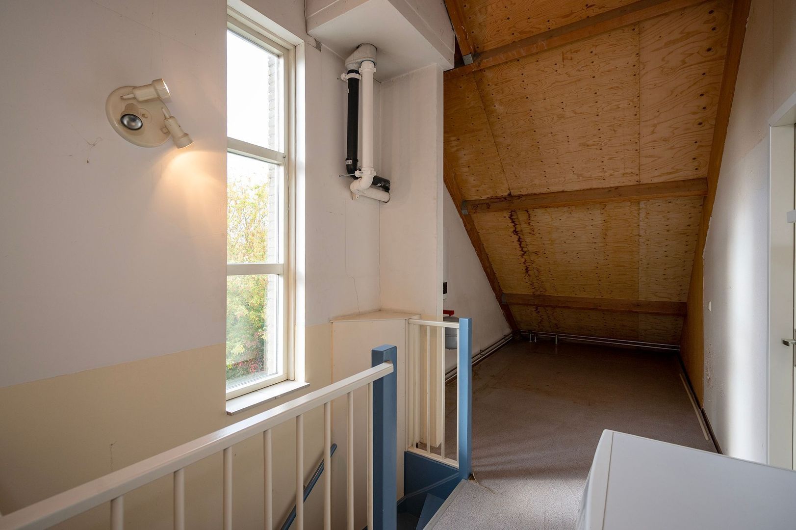 De tweede verdieping biedt verrassend veel ruimte, met een riante voorzolder voorzien van daglicht, aansluitingen voor wasmachine en droger, cv-ketel opstelling en extra bergruimte. Daarnaast bevindt zich hier een vierde slaapkamer met dakraam en een tweede badkamer met wastafel en inloopdouche. Een bergvliering completeert het geheel.