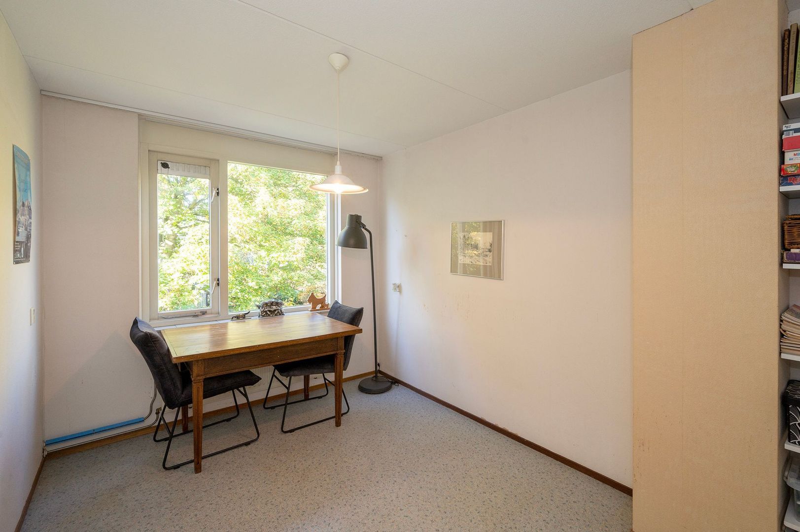 De overloop biedt toegang tot drie ruime slaapkamers, waarvan de hoofdslaapkamer aan de voorzijde een fraai uitzicht biedt over het park. De overige twee slaapkamers aan de achterzijde kijken uit op de groene achtertuin. De centraal gelegen badkamer is voorzien van een wastafel, toilet, inloopdouche en een handdoekradiator.