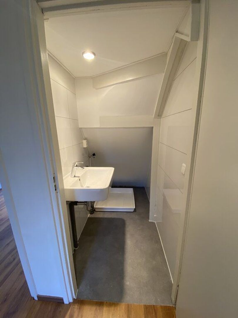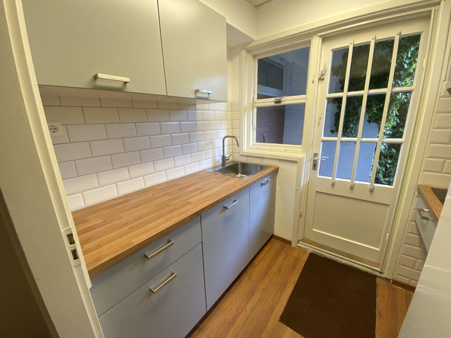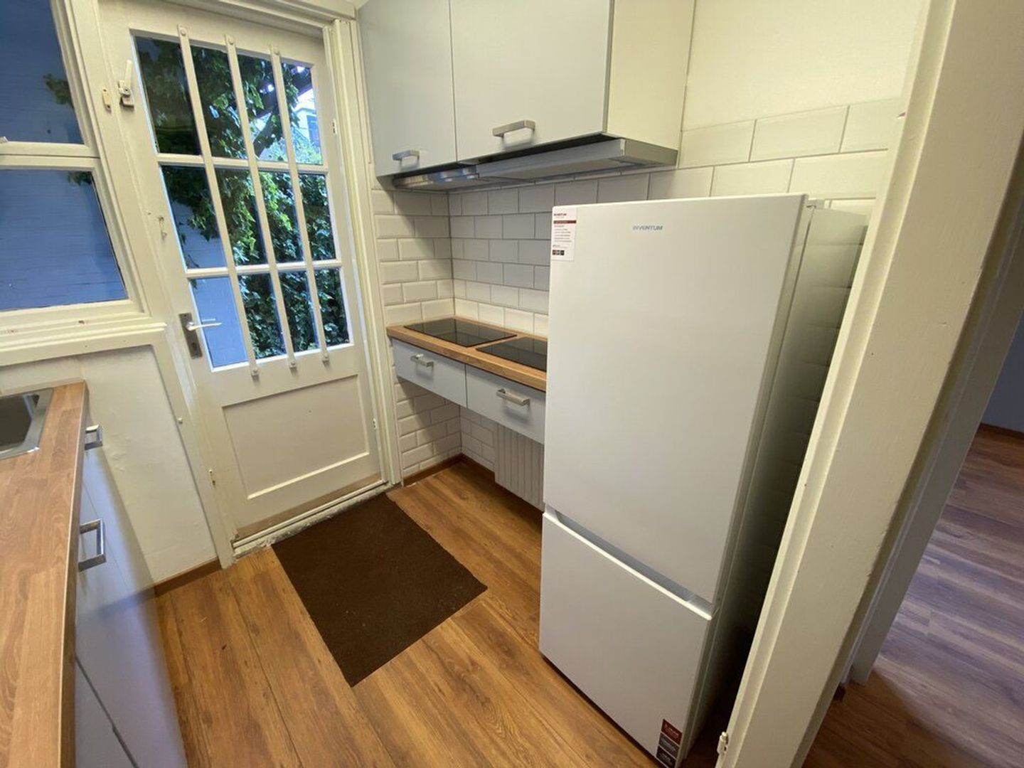 Bij binnenkomst bevindt u zich in de hal waar de toiletruimte en de douche zich bevinden. Aan het einde van de gang bevindt zich de keuken welke volledig is gerenoveerd. De keuken beschikt over voldoende kastruimte, een vaatwasser, afzuiginstallatie, inductie kookplaten en een koelkast met vries compartiment.