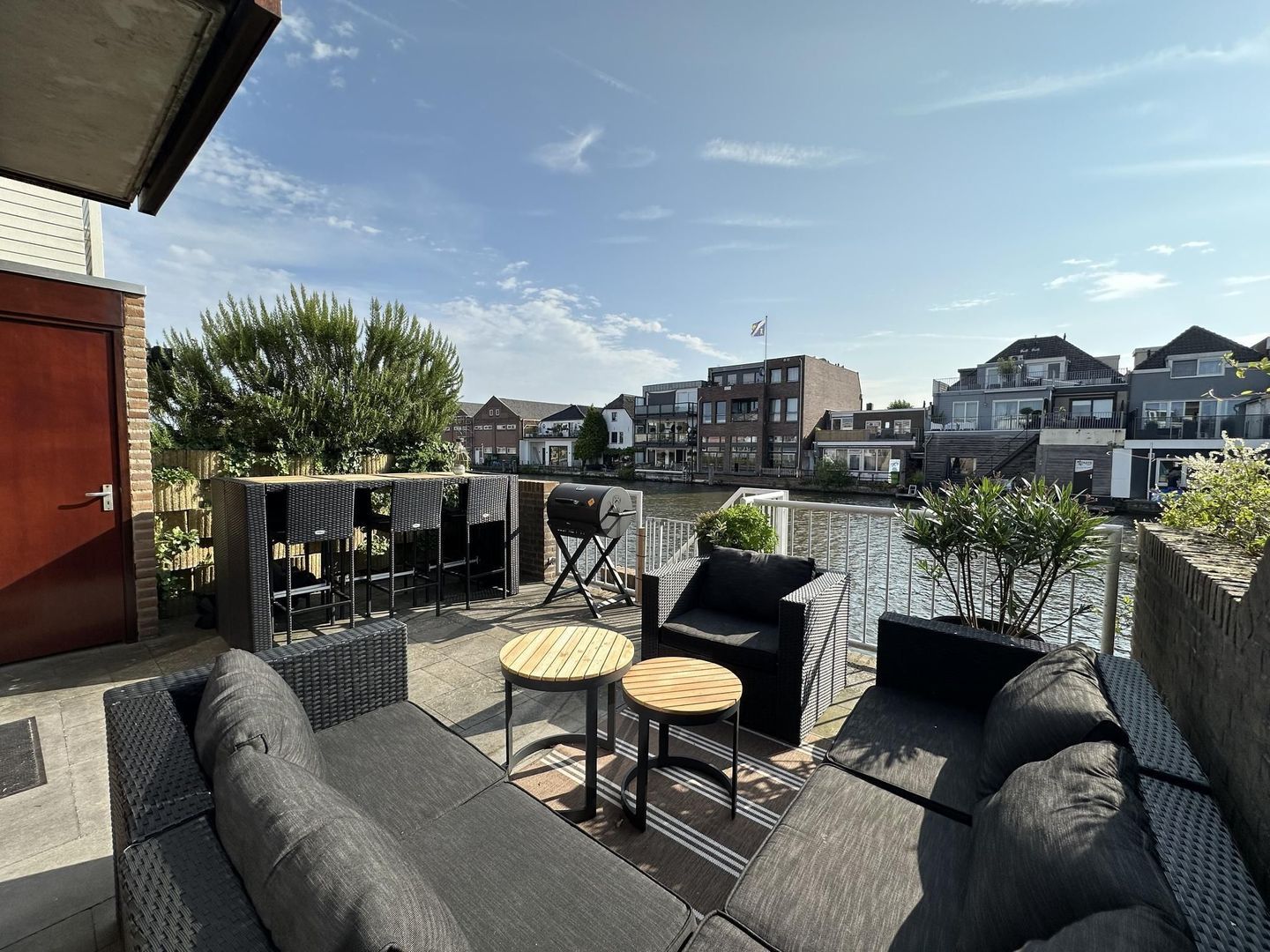 De tuin/terras, direct grenzend aan de Oude Rijn, is keurig betegeld. Hier kunt u optimaal profiteren van de vrije ligging, de ochtend- en middagzon, en het levendige waterverkeer. Aan de buitenzijde bevindt zich ook nog een praktische opbergkast en zonnescherm.
