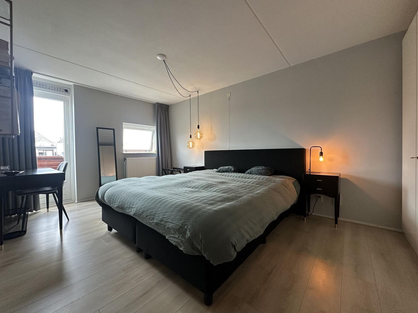 De royale masterbedroom, met toegang tot het mooie balkon, kijkt uit over de Oude Rijn. Tevens is hier de derde slaapkamer gelegen, ook met toegang tot het balkon.