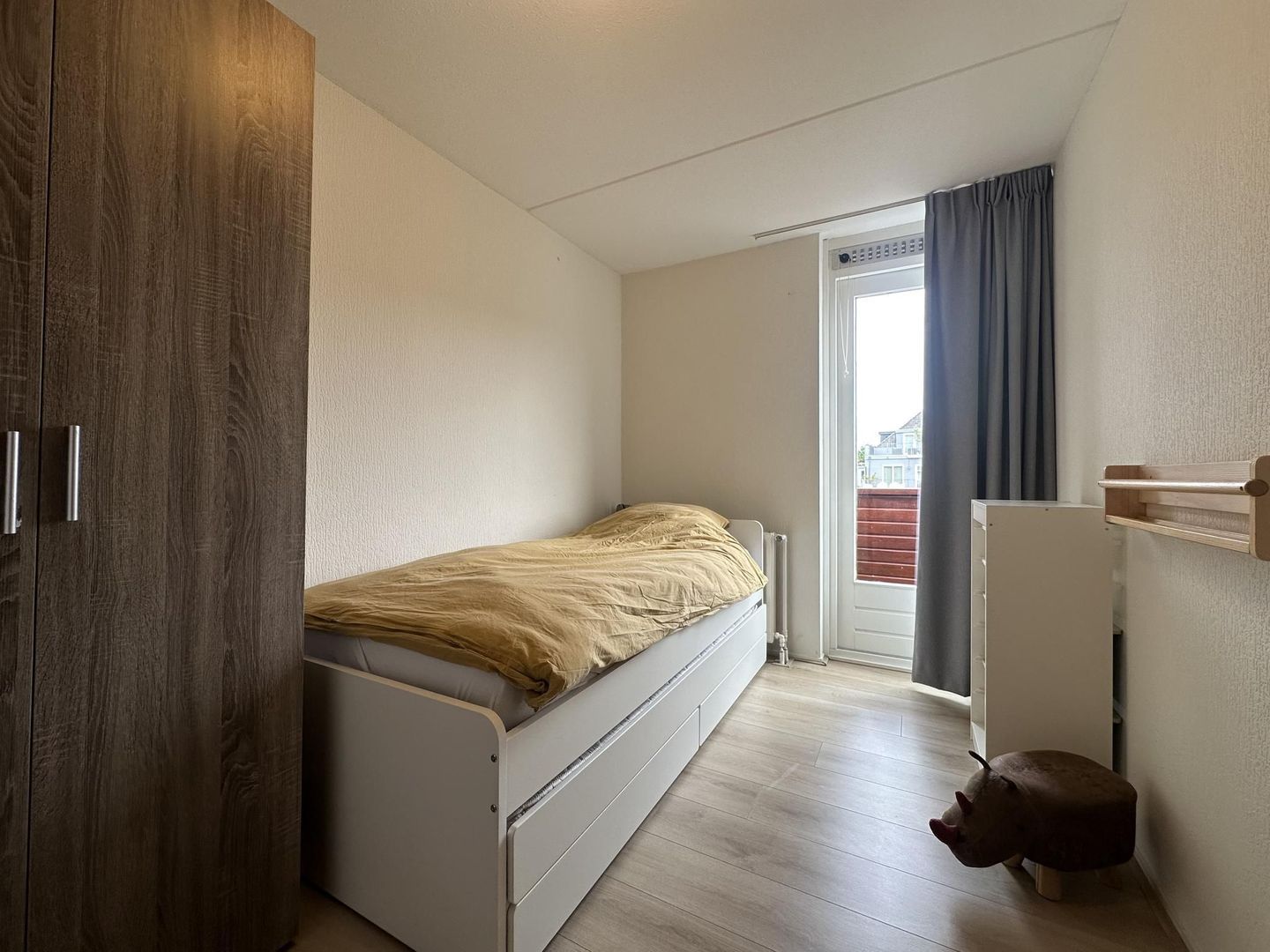 De eerste slaapkamer, gelegen aan de voorzijde, heeft toegang tot een zonnig balkon op het westen, ideaal om van de middag- en avondzon te genieten.