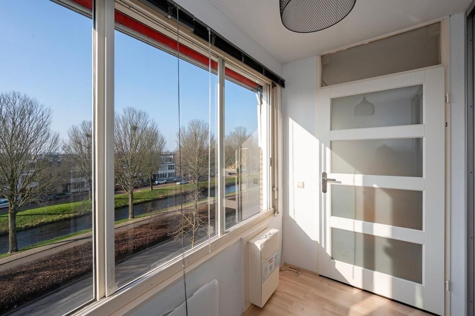 De loggia is tevens bereikbaar vanuit de woonkamer en heeft een fraai en rustgevend uitzicht op de voorgelegen groen- en waterpartij. De schuiframen zijn te openen waardoor het als een heerlijke buitenruimte gebruikt kan worden.