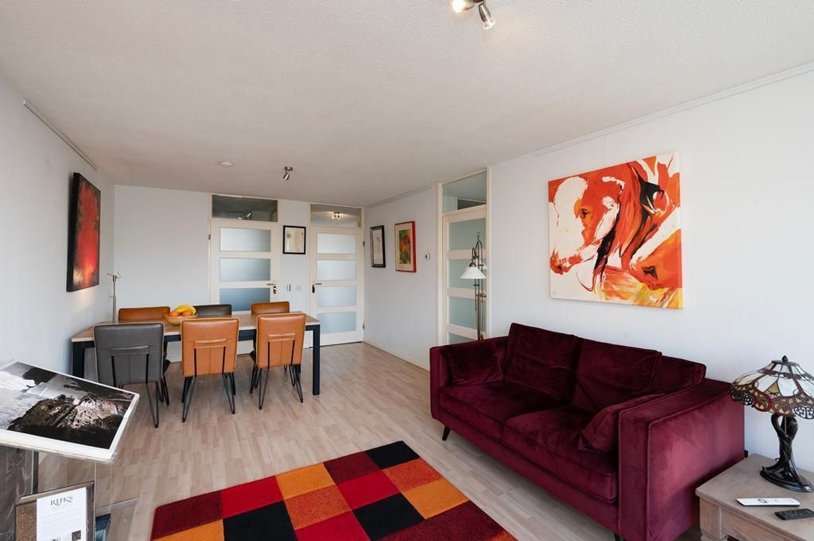 De woonkamer is ruim en voorzien van grote raampartijen op het zuidwesten met fraai