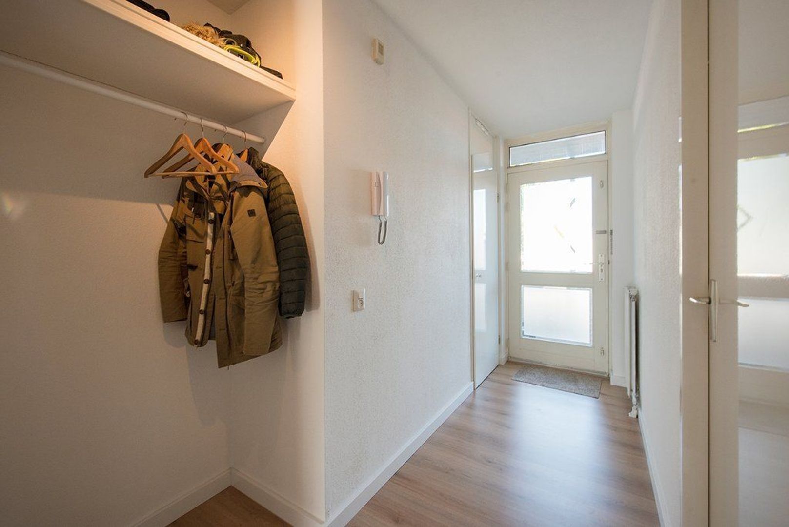 Afgesloten entree met brievenbussen, lift en het trappenhuis op de begane grond.