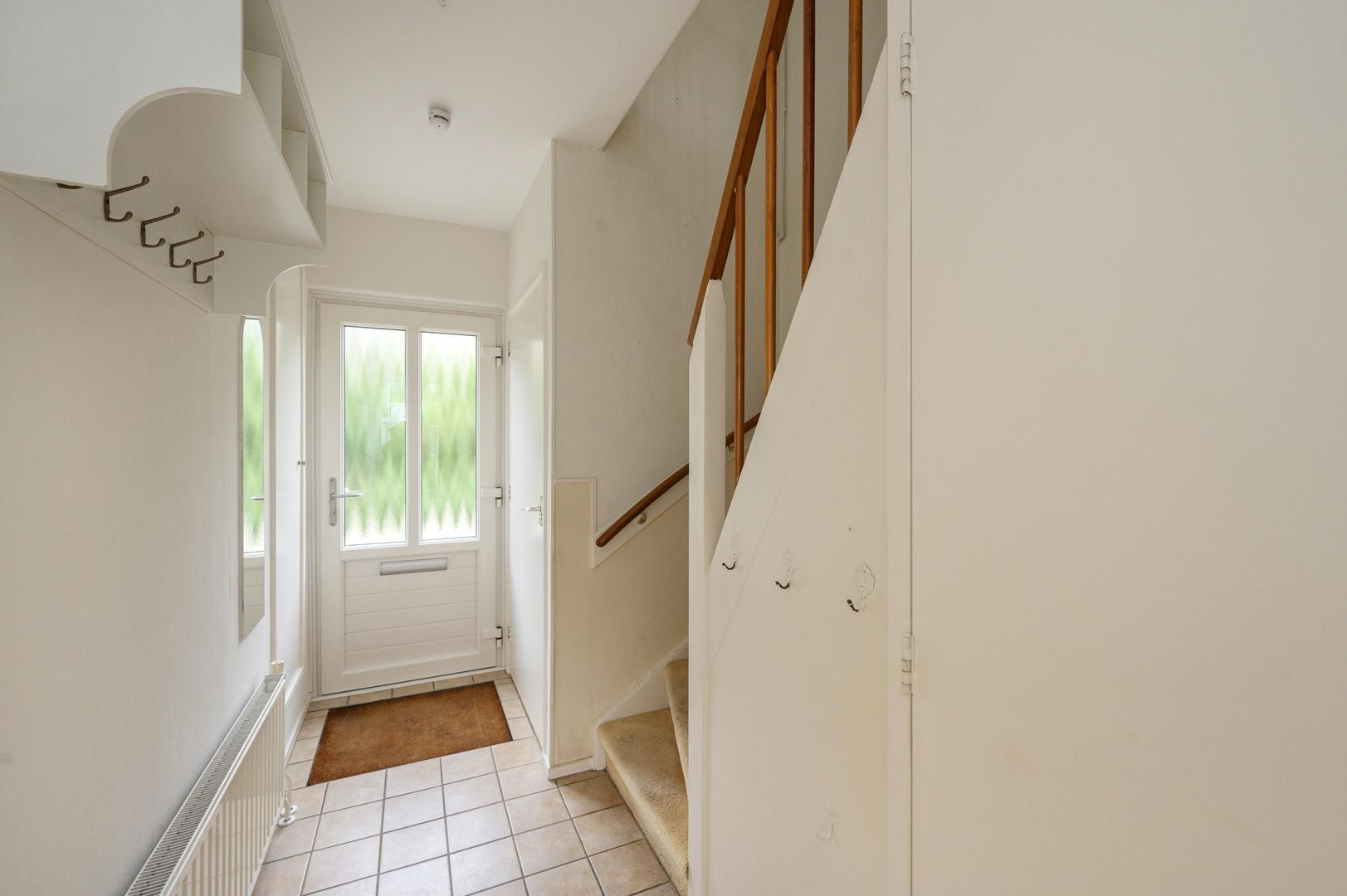 Via de verzorgde voortuin bereik je de entree van de woning. In de lichte hal bevinden zich de meterkast, het gemoderniseerde wandtoilet, de trapopgang en de toegang tot de woonkamer.