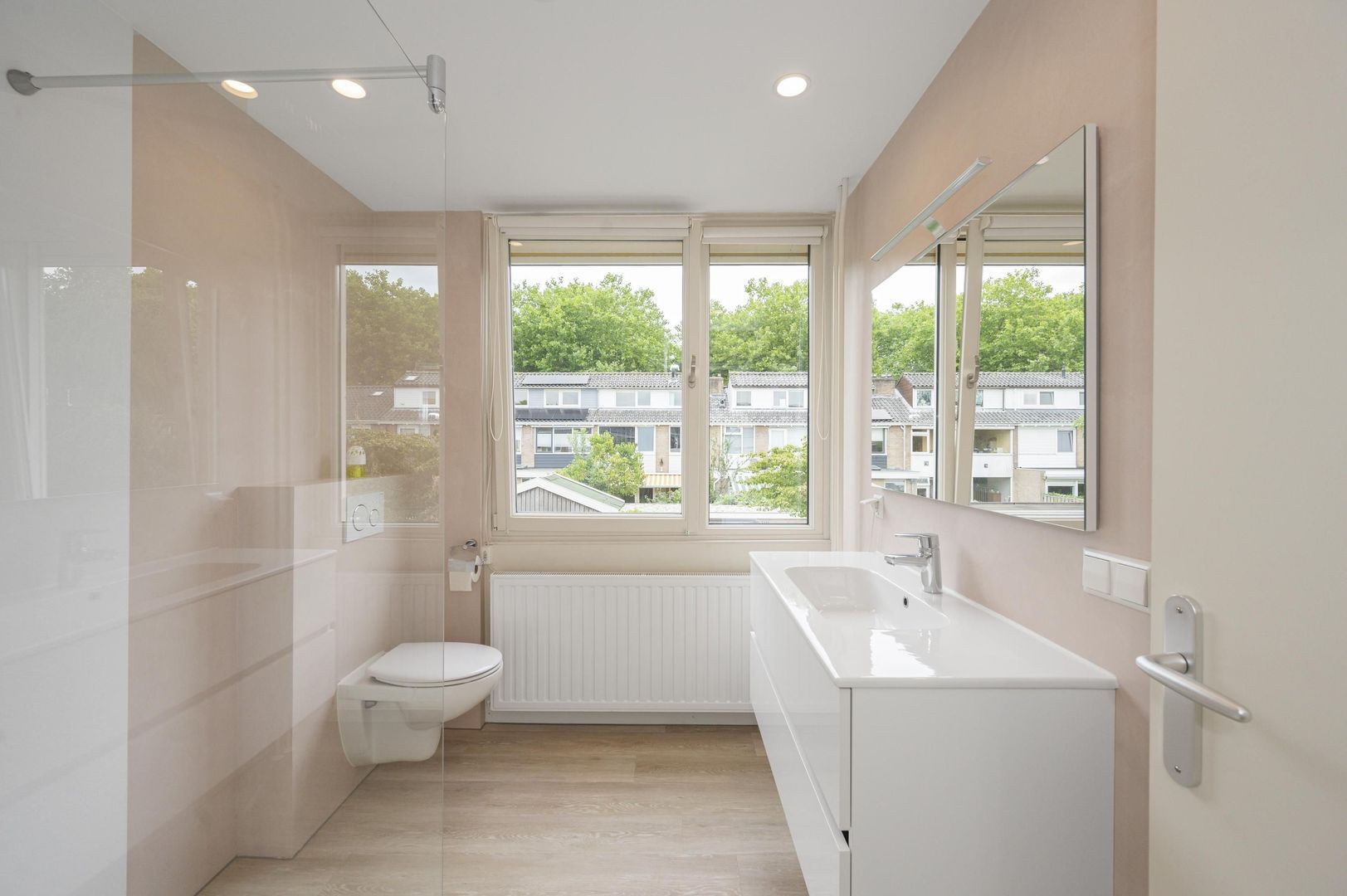 Op de eerste verdieping zijn twee ruime slaapkamers te vinden, samen met een nette en lichte badkamer voorzien van een douche, modern wastafelmeubel en een tweede toilet, comfortabel en praktisch voor dagelijks gebruik. De oorspronkelijke badkamer is nu in gebruik als wasruimte met opstelling van de wasmachine en de wasdroger