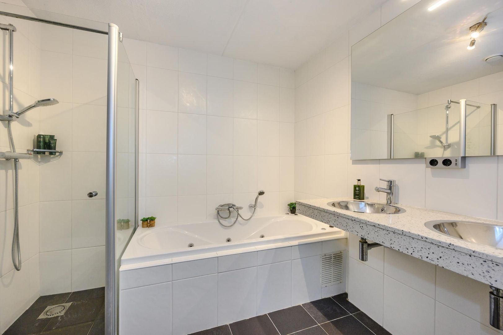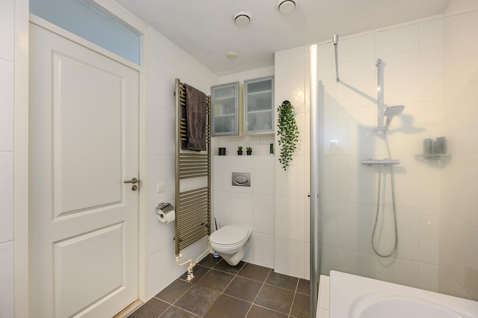 Overloop, drie echt ruime slaapkamers en badkamer. Twee van deze slaapkamers zijn aan de tuinkant gelegen waarvan er één is voorzien van een inbouwkast. De slaapkamer aan de voorzijde van de woning is woning is breed en biedt een plezierig uitzicht over de voorgelegen weilanden. De badkamer is luxe uitgevoerd en beschikt over een hangend closet, riante douchehoek, bubbelbad, dubbele wastafel, verwarmde spiegel met dimbaar lampje en designradiator.