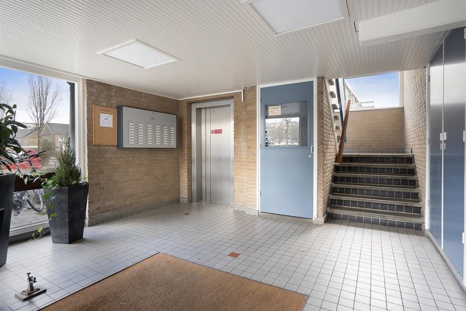 Overdekt bellentableau met brievenbussen en toegang tot de trap en lift. Daarnaast heeft u vanuit hier toegang tot de bergingen.