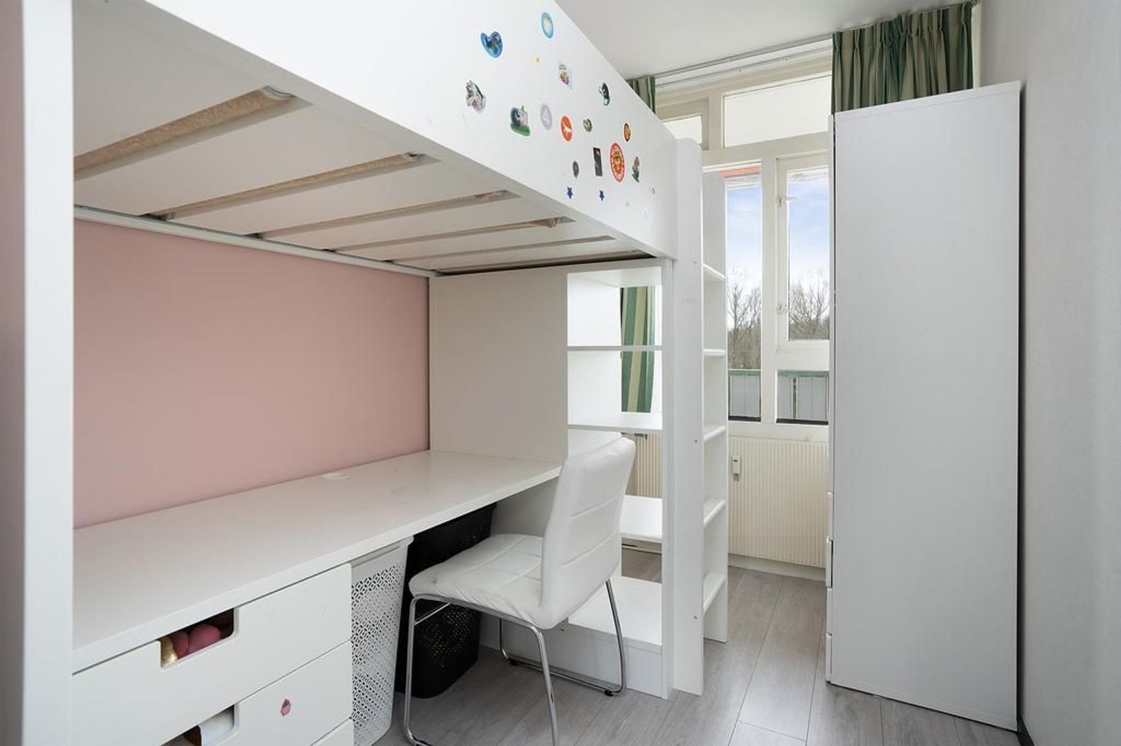 Hal/entree met meterkast en garderobe-hoek. Aan de voorzijde van het appartement treft u de ruime keuken voorzien van diverse inbouwapparatuur en een vaste inbouwkast. De woonkamer is aan de achterzijde gelegen en heerlijk licht. De woonkamer is voorzien van een elektrisch zonnescherm en biedt weids uitzicht over het groen en een strook van de Zegerplas. Ook biedt de woonkamer toegang tot het zonnige balkon welke op het zuiden is gelegen. Vanuit de tweede hal van het appartement heeft u toegang tot de drie slaapkamers waar het appartement over beschikt. Twee aan de achterzijde en één aan de voorzijde. Tussen deze slaapkamers is de keurige badkamer gelegen welke is voorzien van een douche, wastafelmeubel en aansluitingen voor de wasmachine en droger.