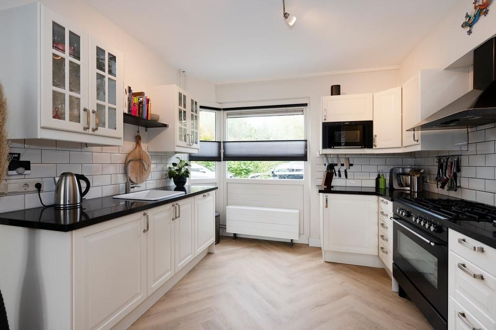 De vorige bewoners hebben de luxe keuken naar de voorzijde van de woning verplaatst wat zorgt voor een erg ruimtelijke indeling. De keuken heeft o.a. een groot gasfornuis met brede oven en 5 gaspitten, vaatwasser, magnetron, koelkast, separate vriezer en voldoende bergruimte in laden en kasten.