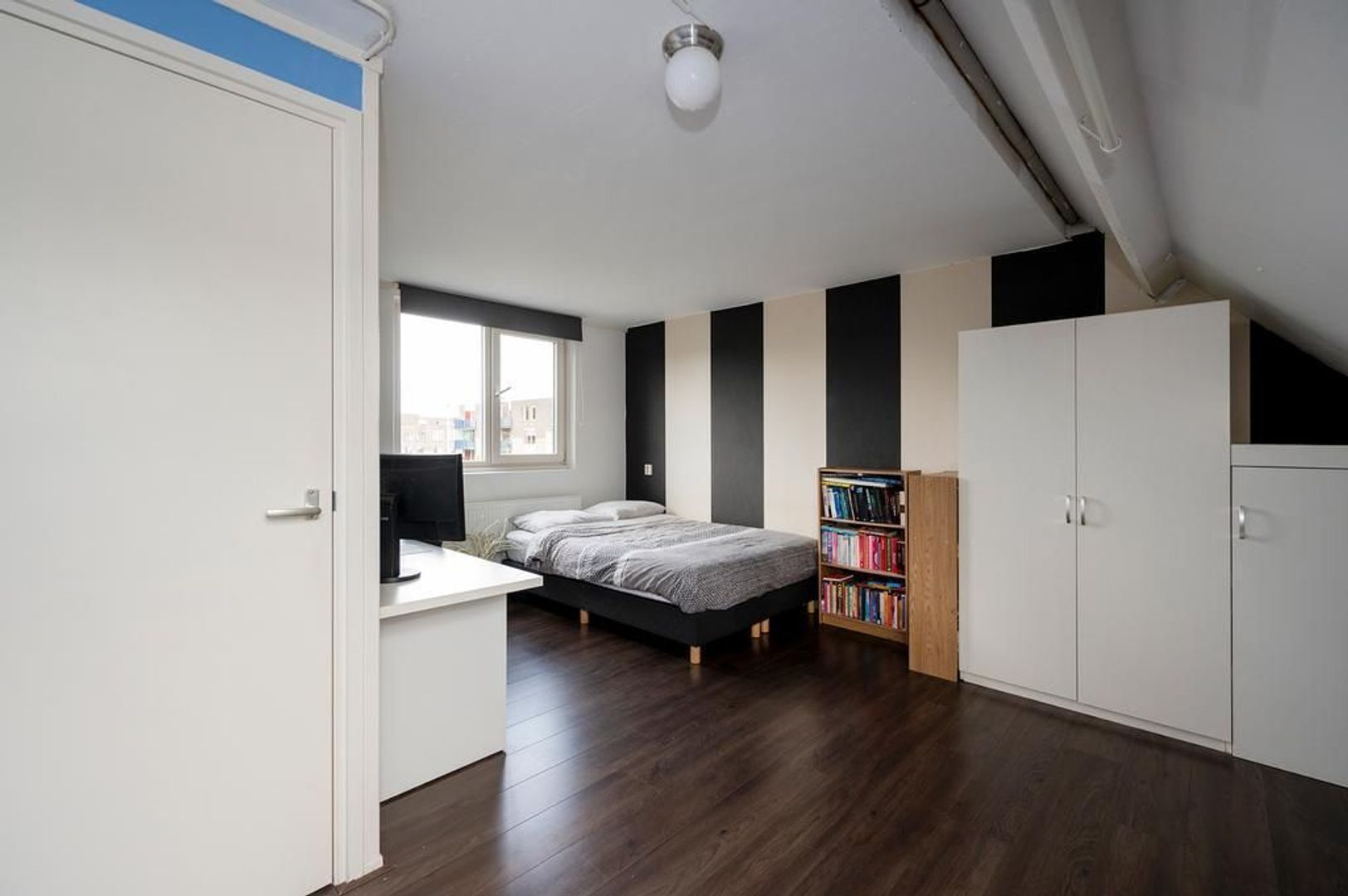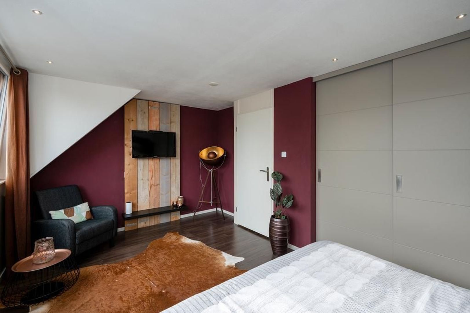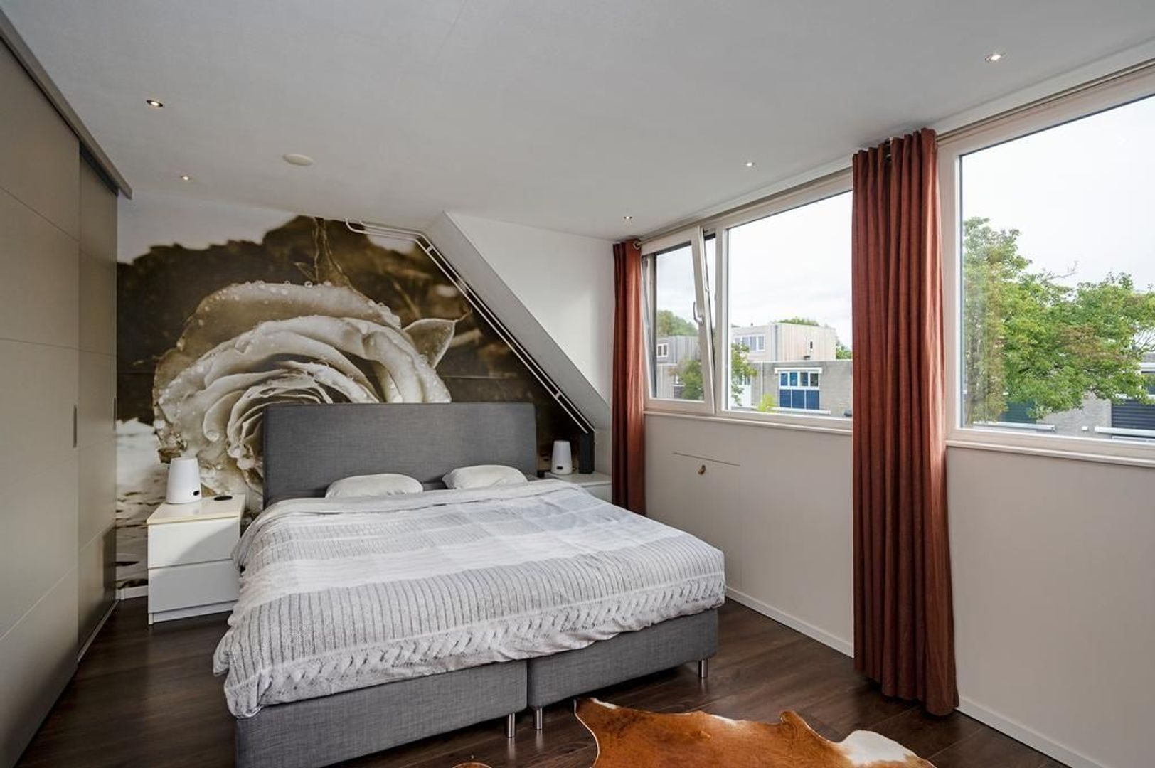 Op de eerste etage bevinden zich twee ruime slaapkamers. De slaapkamer aan de tuinzijde is in de volledige breedte van het huis geplaatst en heeft een vaste kast. Deze grote slaapkamer bestond uit 2 slaapkamer en is eventueel weer eenvoudig naar 2 kamers terug te brengen.