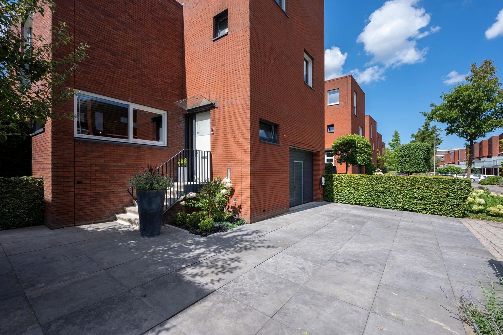 Deze woning beschikt over een diepe, prachtig aangelegde voortuin, waar u op uw eigen terrein gemakkelijk meerdere auto's kunt parkeren. De inpandige garage, met zowel een roldeur als een aparte loopdeur, biedt extra gemak en toegankelijkheid. Een trapje leidt u naar de uitnodigende entree van de woning.