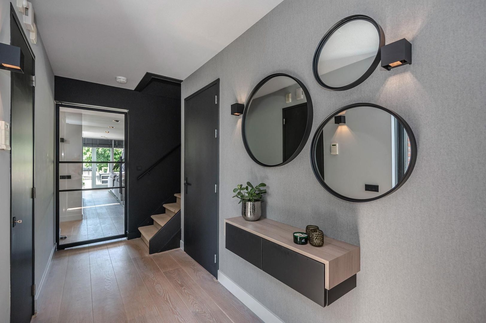 Bij binnenkomst in de ruime hal vindt u het vrijhangende toilet met fonteintje, de meterkast, de deur naar de lager gelegen garage en trapopgang naar de eerste verdieping. Aan het einde van de hal wordt u verwelkomd door de royale woonkamer en woonkeuken.