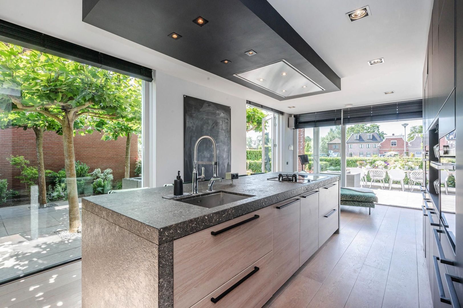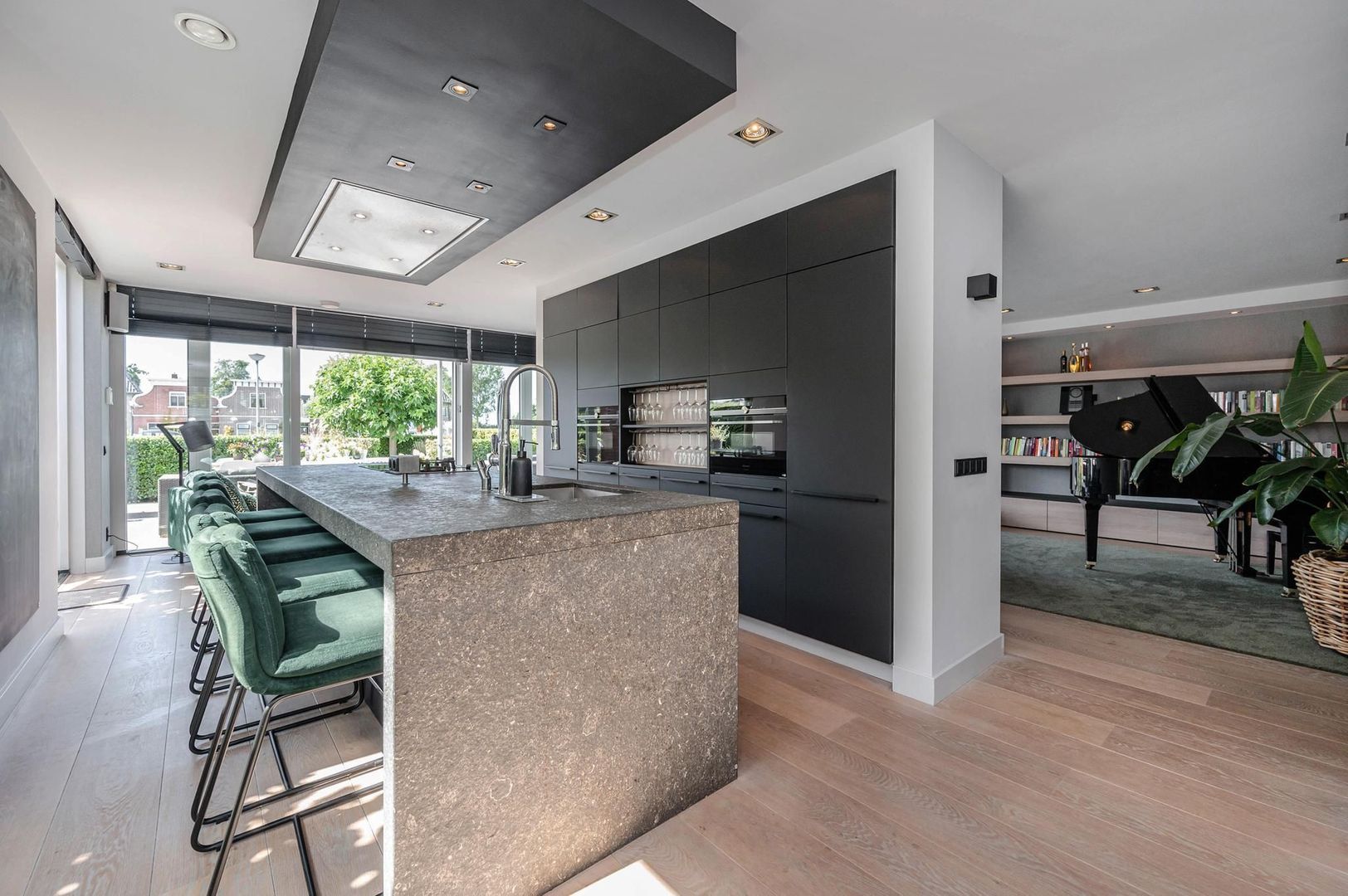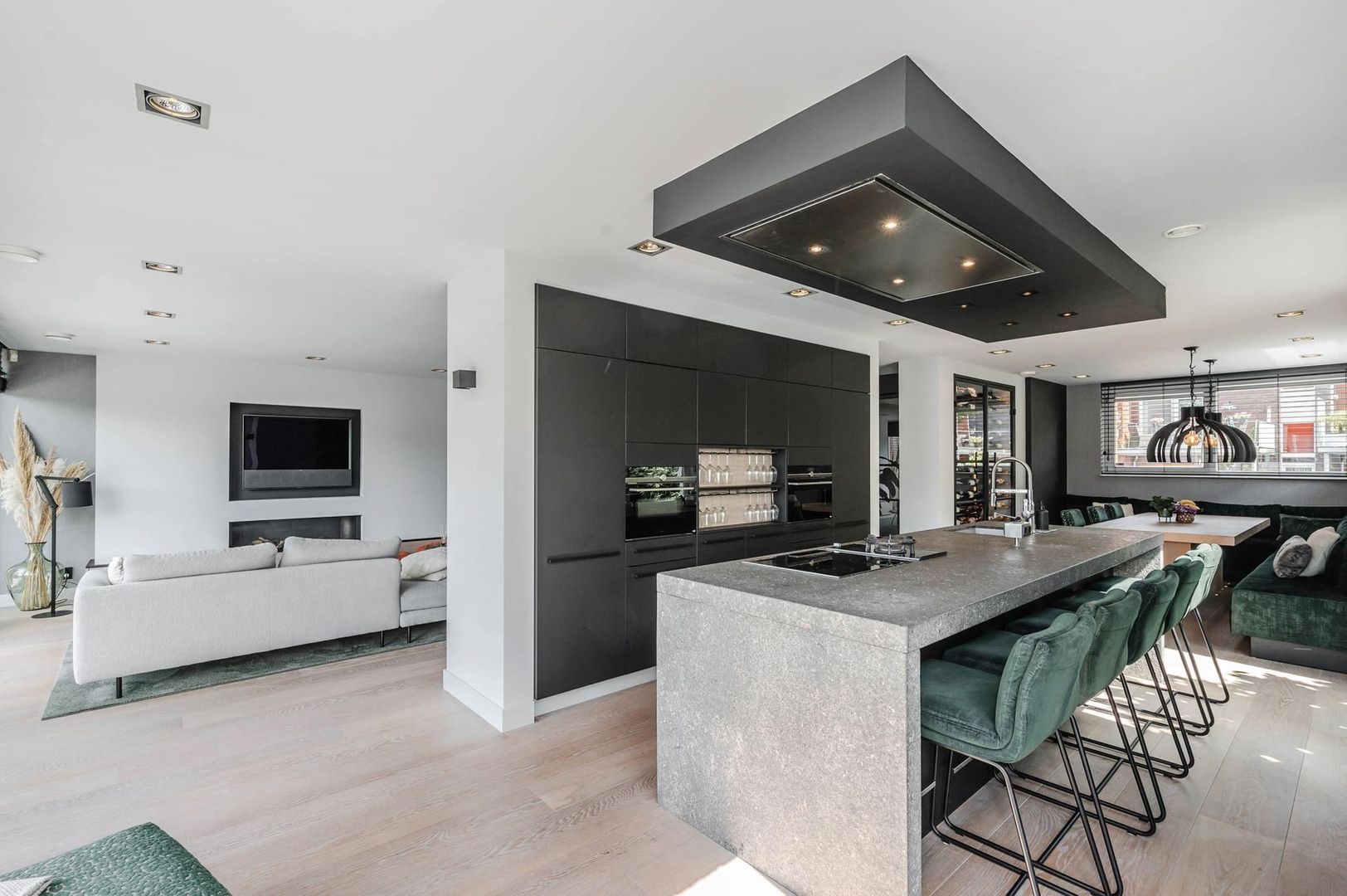 -Moderne Keuken: Luxe woonkeuken met stijlvol kookeiland, moderne apparatuur en gezellige bar.
