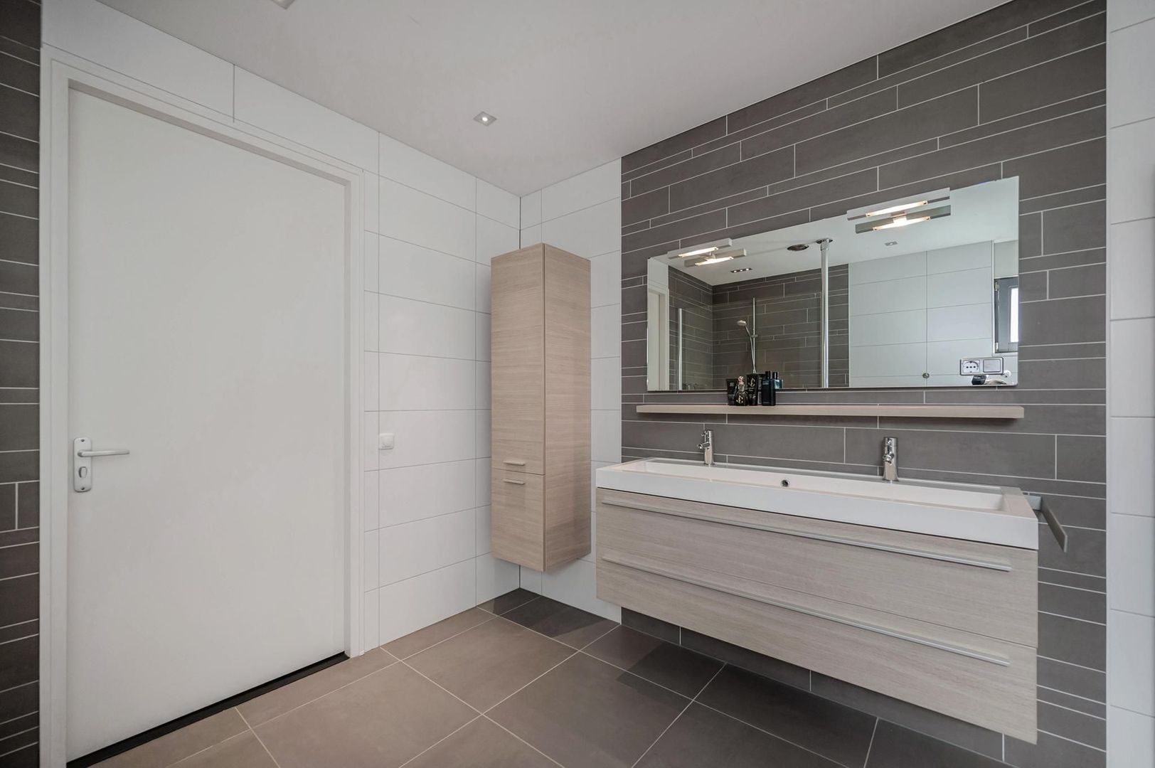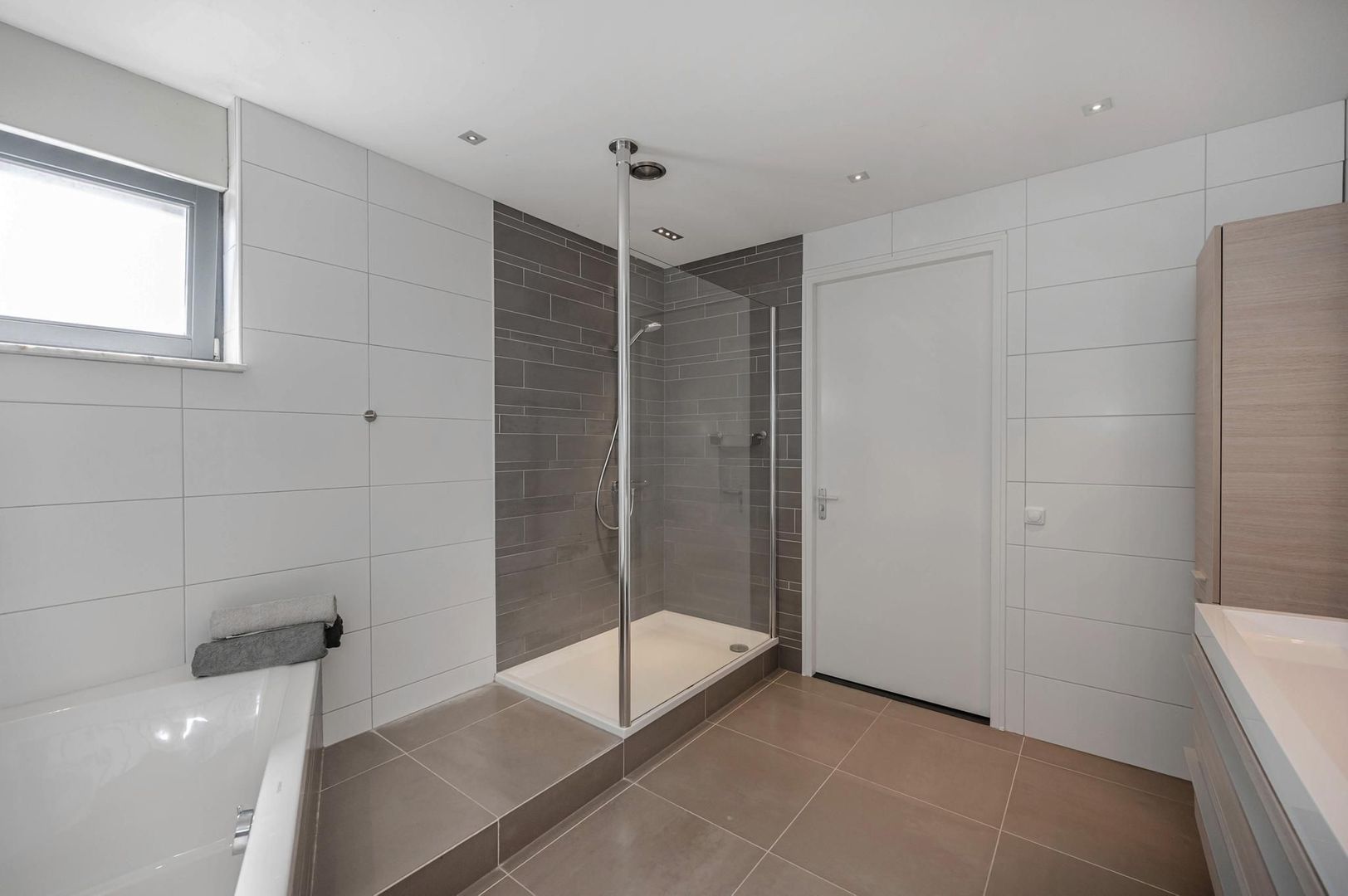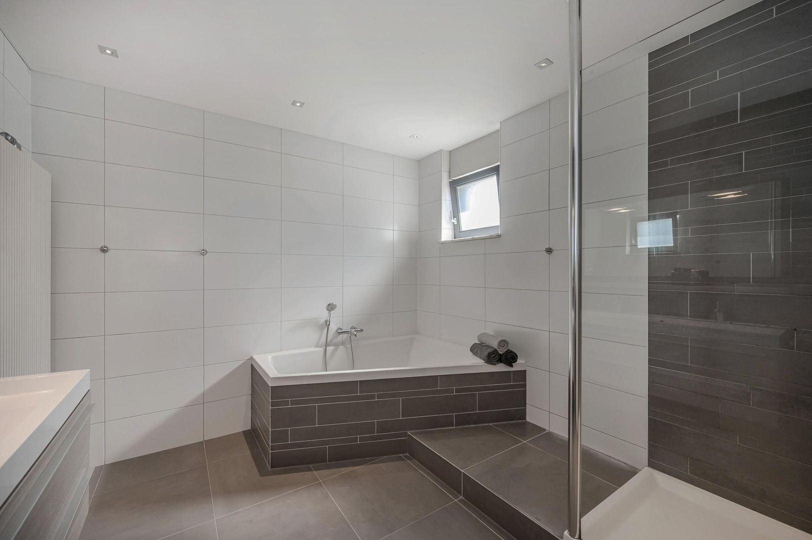 De luxe badkamer is van alle gemakken voorzien, met een royale inloopdouche, een ligbad en een dubbele wastafel met meubel. Het aparte toilet is praktisch gelegen direct naast de badkamer.