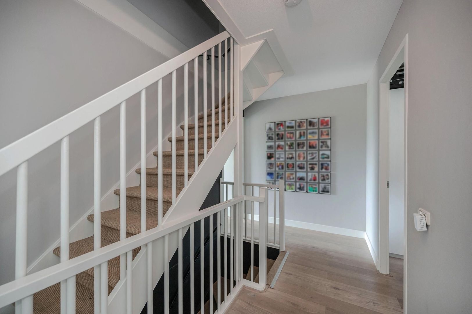 Het ruime en open trappenhuis leidt u naar de overloop, van waaruit u toegang heeft tot verschillende vertrekken en de trap naar de tweede verdieping.