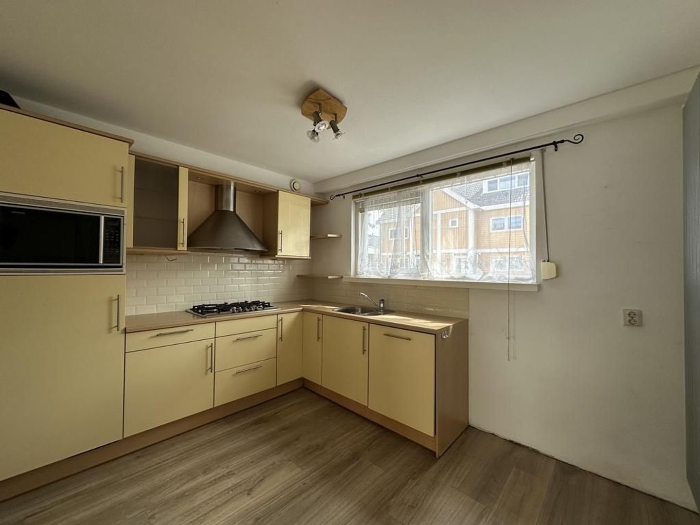 Aan de voorzijde van de woning vindt u de L- vormige keuken met gezellig zicht op de straat. De keuken uitgevoerd in creme kleurige kastdeuren en lades en beschikt over de volgende apparatuur: 5-pits gaskookplaat, afzuigkap, koelkast, vaatwasser en een combi-oven.