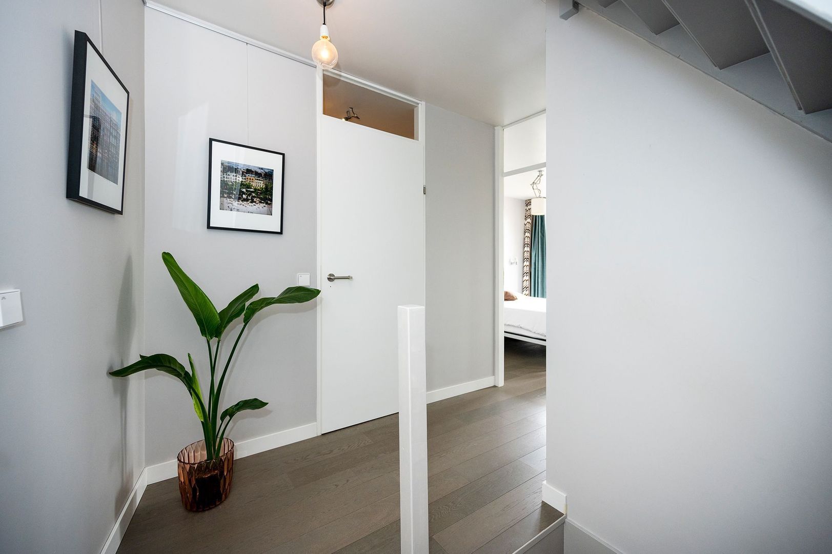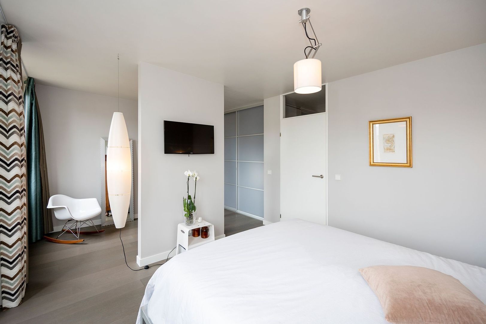 Overloop, badkamer met wastafelmeubel met waskom, 2e toilet, inloopdouche met stortdouche, fraaie kranen en vloerverwarming. Het geheel is voorzien van prachtig tegelwerk en zeer glad stucwerk. Ruime slaapkamer aan de straatzijde en zeer grote “master bedroom” aan de Rijnzijde met kleedkamer en vaste kastenwand welke is voorzien van fraaie schuifdeuren. Deze verdieping is geheel voorzien van een eikenhouten parketvloer in brede delen en strak gestucte wanden.