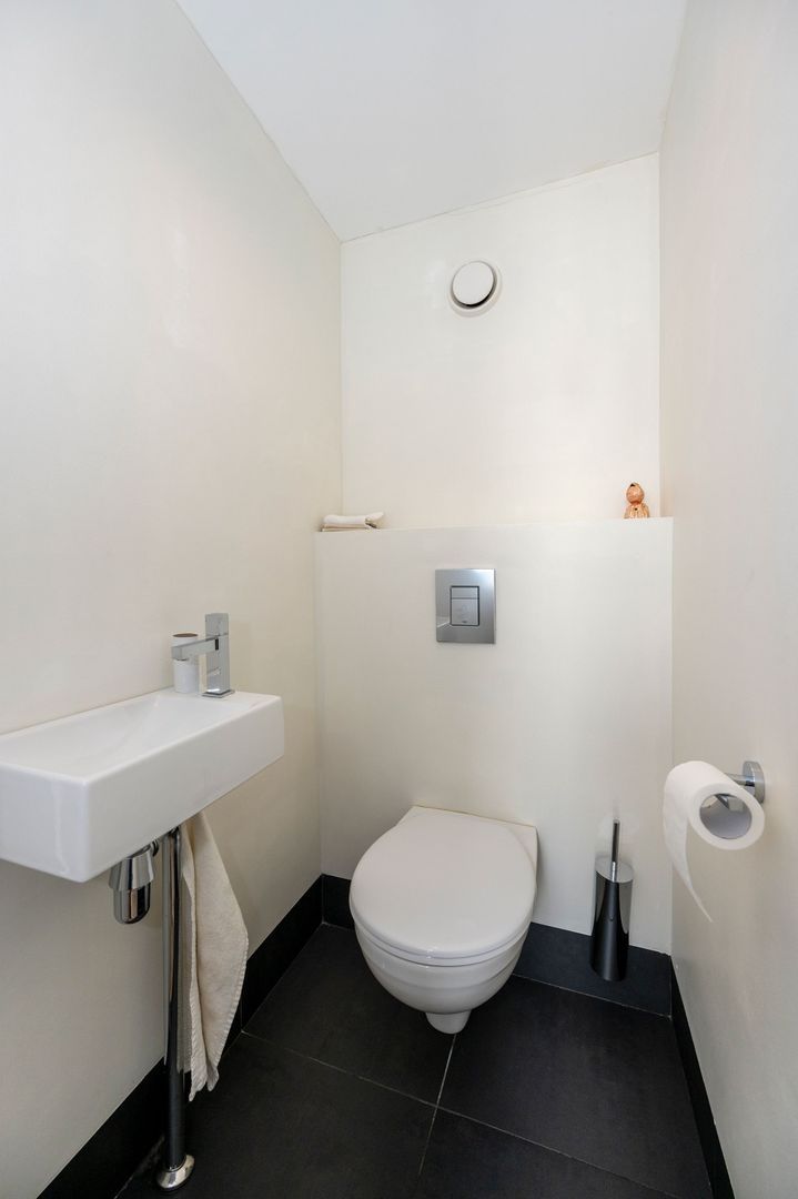 Deze kamer is voorzien van een wastafel en een bergkast met daarin de cv-opstelling.