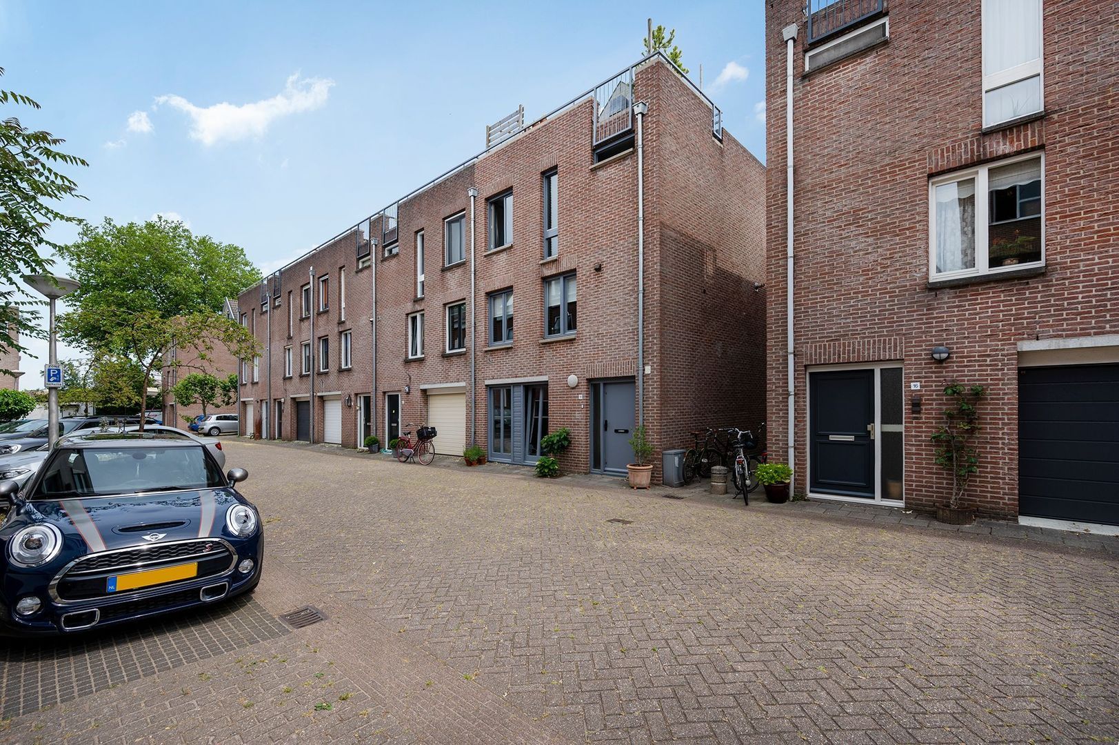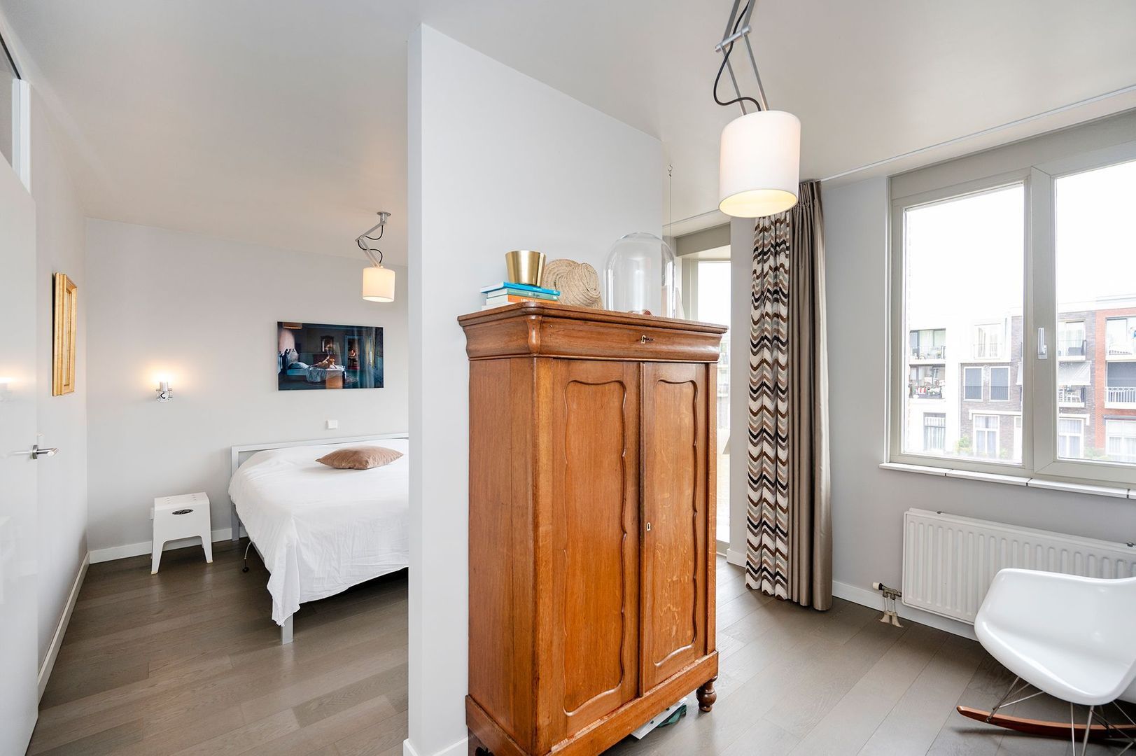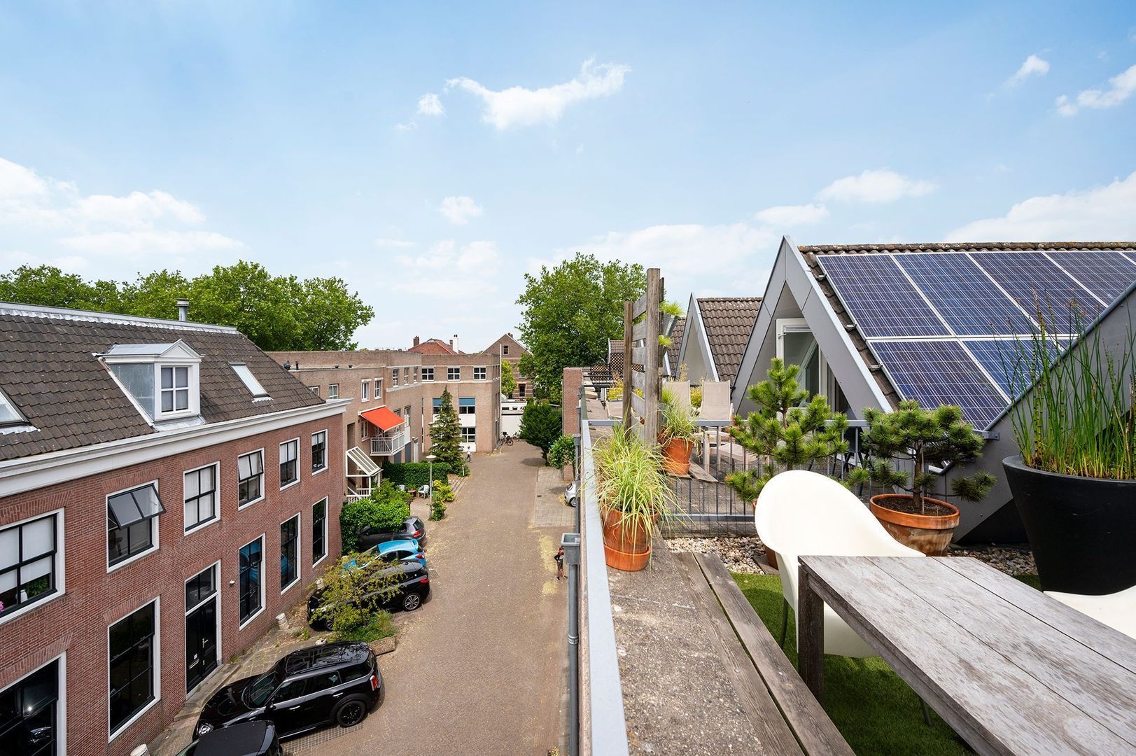 Grote zolderkamer met aan de straatzijde een riant terras met leuk uitzicht over de wijk.