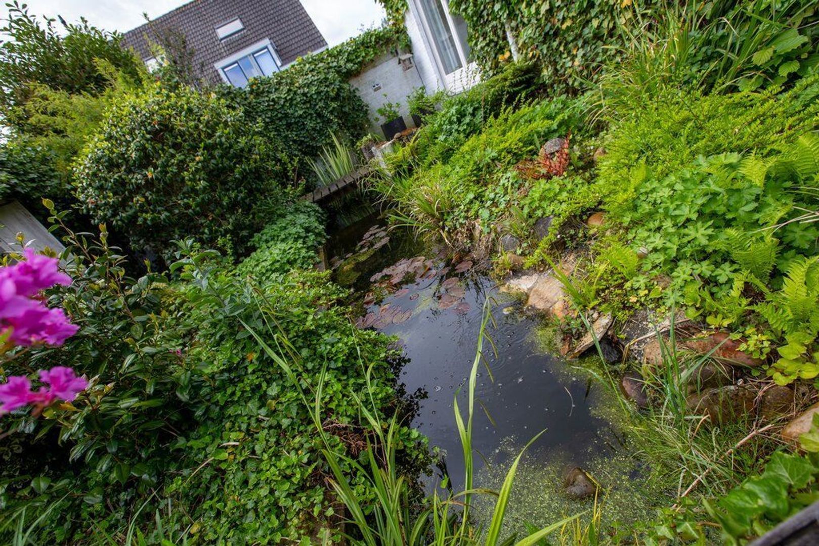 Gezellige binnentuin met een onderheide vlonder tegen het huis aan (deels overdekt). Verder bevindt zich in de tuin een vijver en veel volwassen beplanting wat een gezellige sfeer met zich meebrengt.