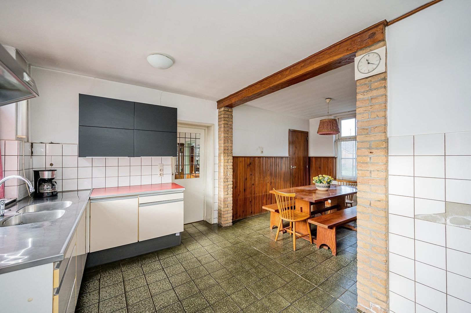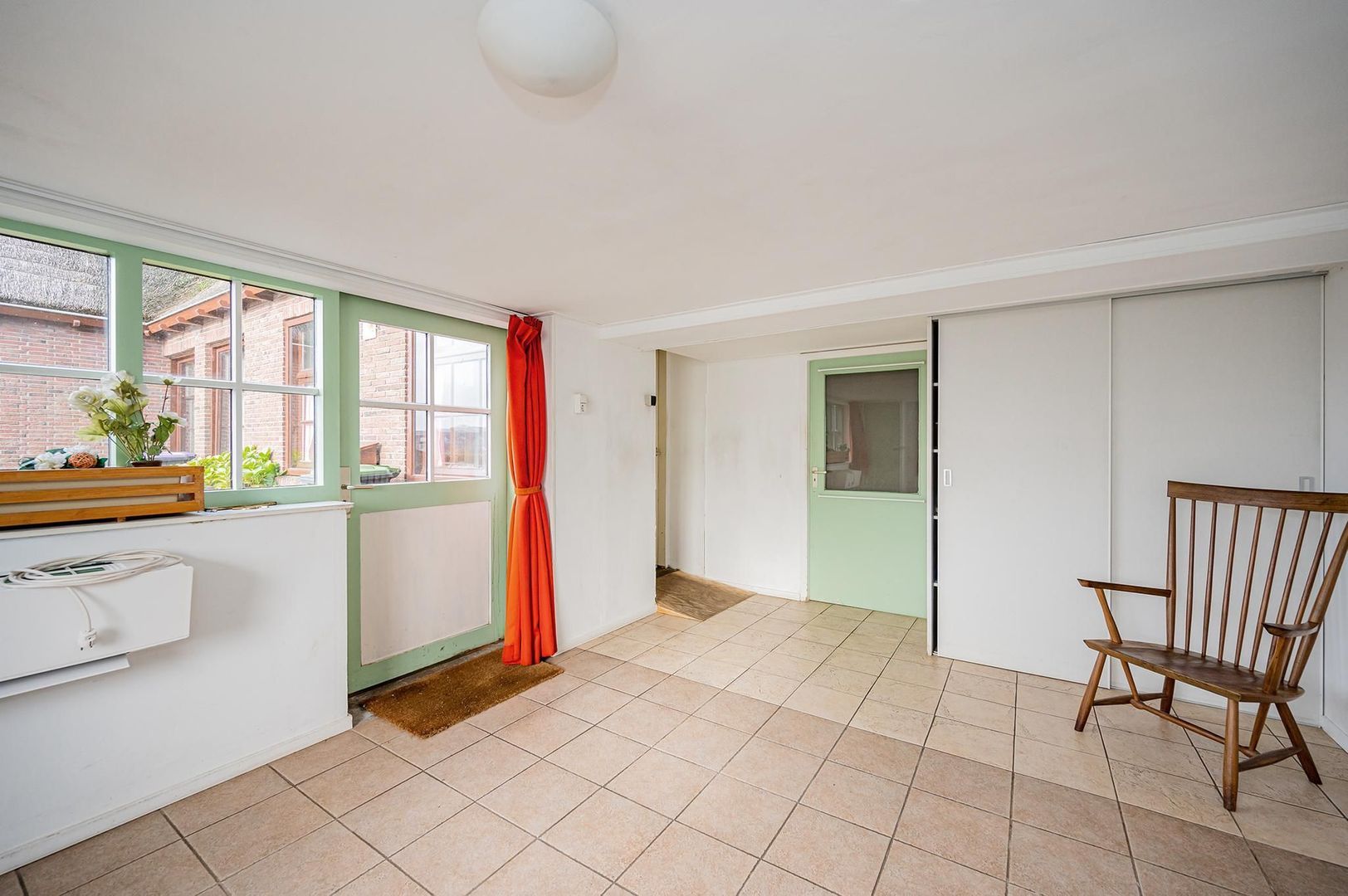 Woonhuis is rietgedekt, de garage (berging) en de bijkeuken zijn met pannen gedekt