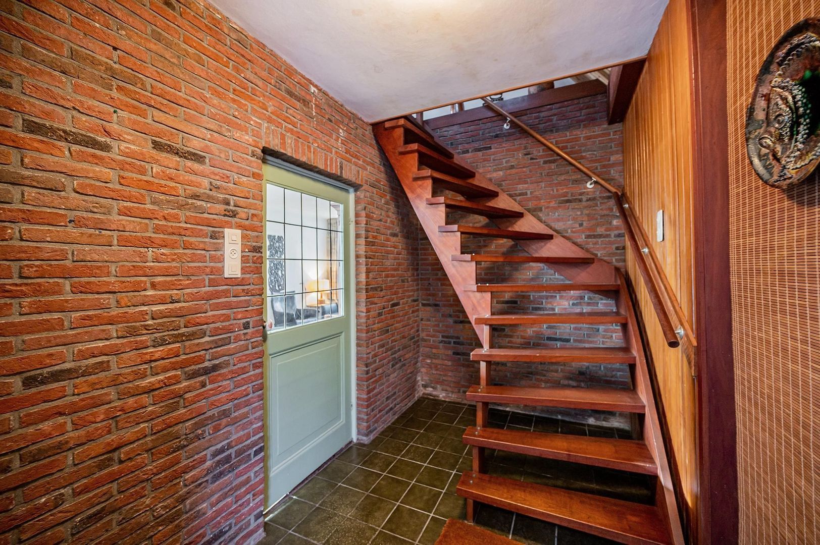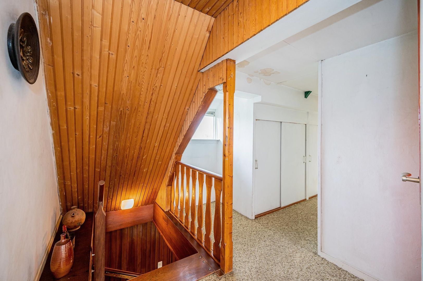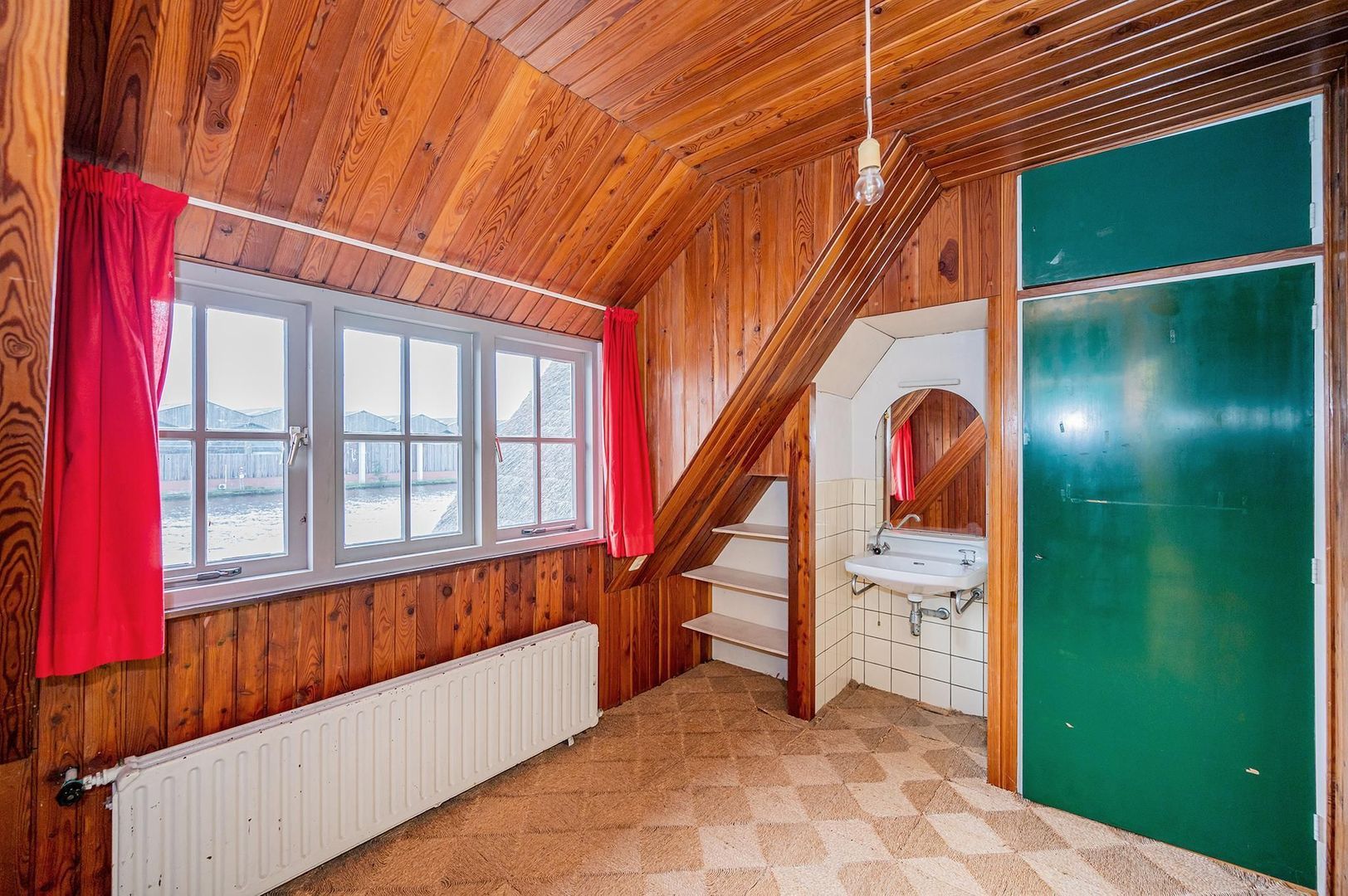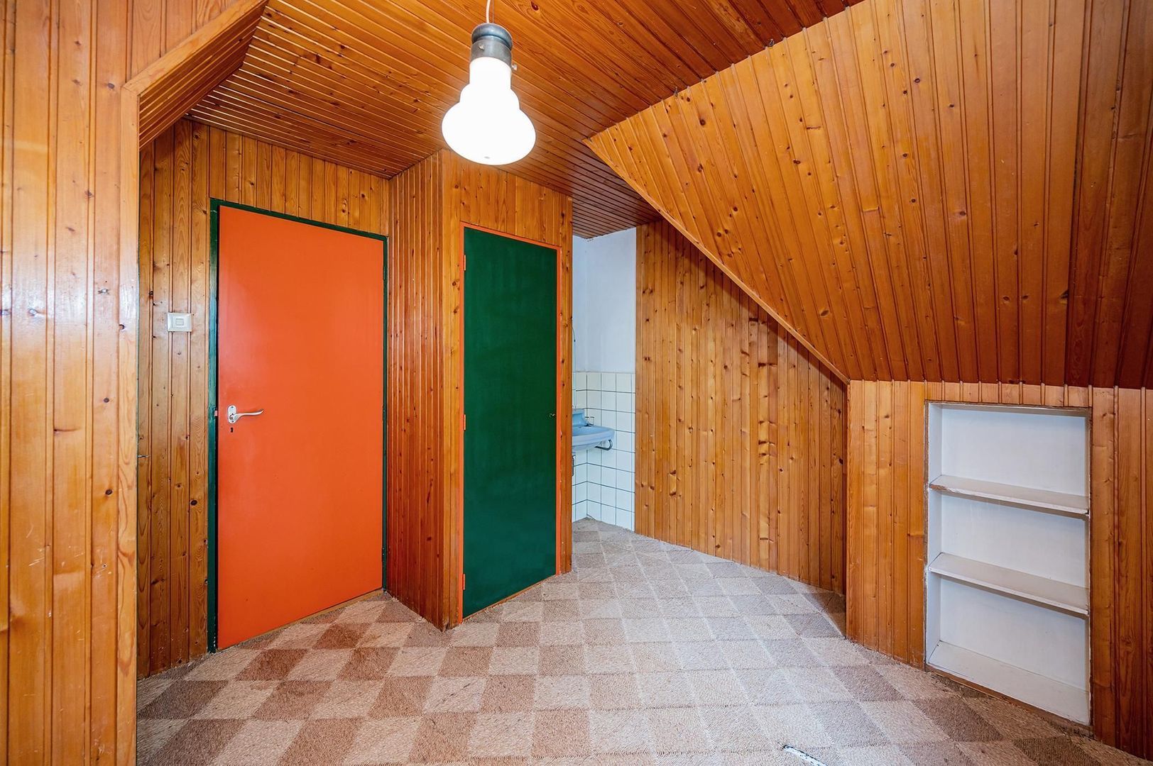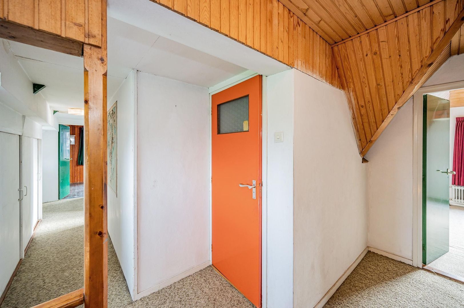 Achter de slaapkamer is royale berging voorzien van een lavet. Hierboven bevindt zich een royale hobbyzolder/werkruimte. Via de hal met toilet en vaste kast, komt u bij de trapopgang naar de verdieping,