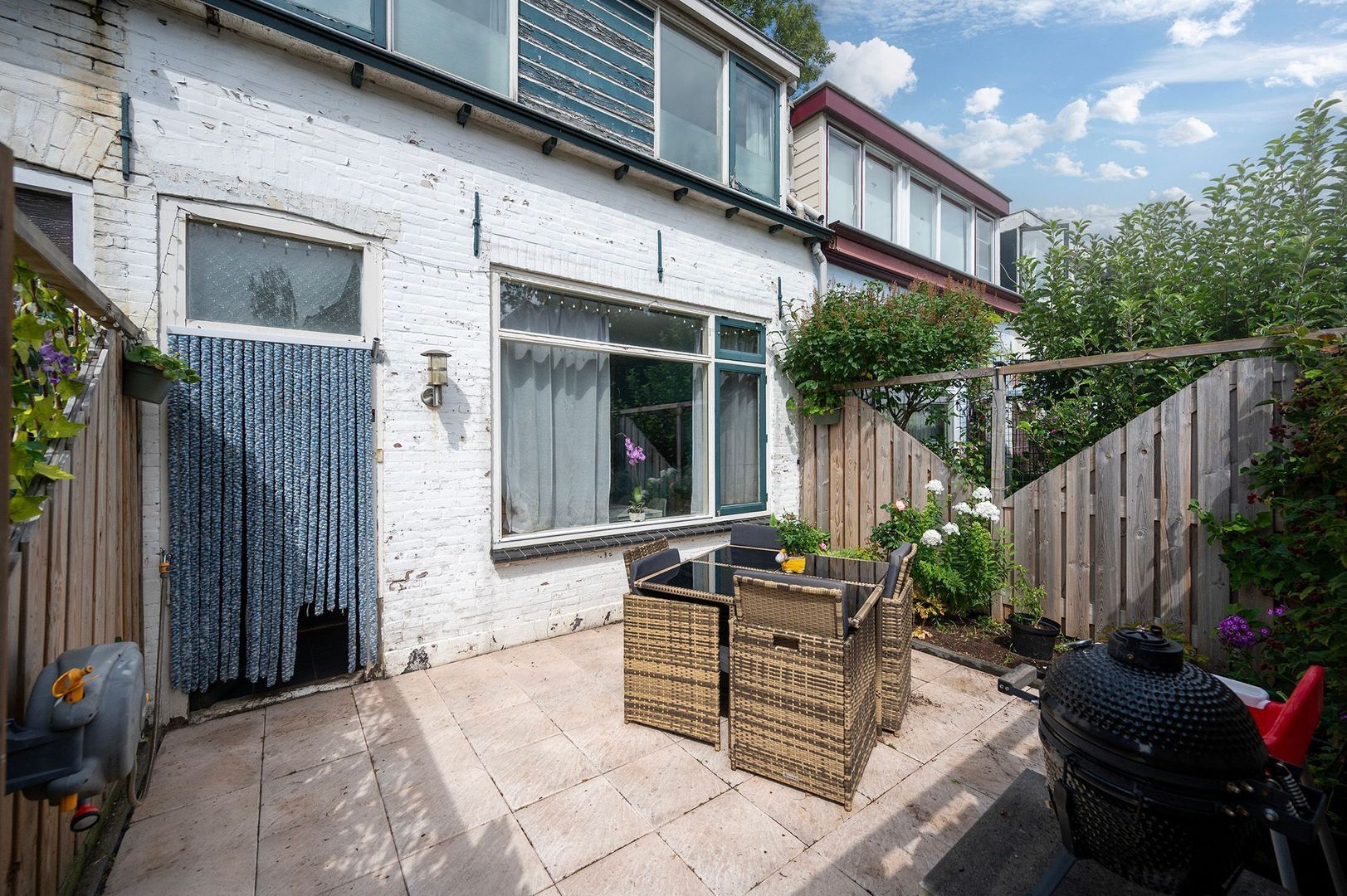 De woning beschikt over een voortuin deze is eenvoudig in te richten naar eigen wens. De steeg aan de achterzijde biedt toegang tot de dubbele berging en heeft een overstek dat extra beschutting biedt bij slecht weer. Met de rustige ligging van de tuin geniet je van privacy en buitenruimte voor ontspanning of spel.
