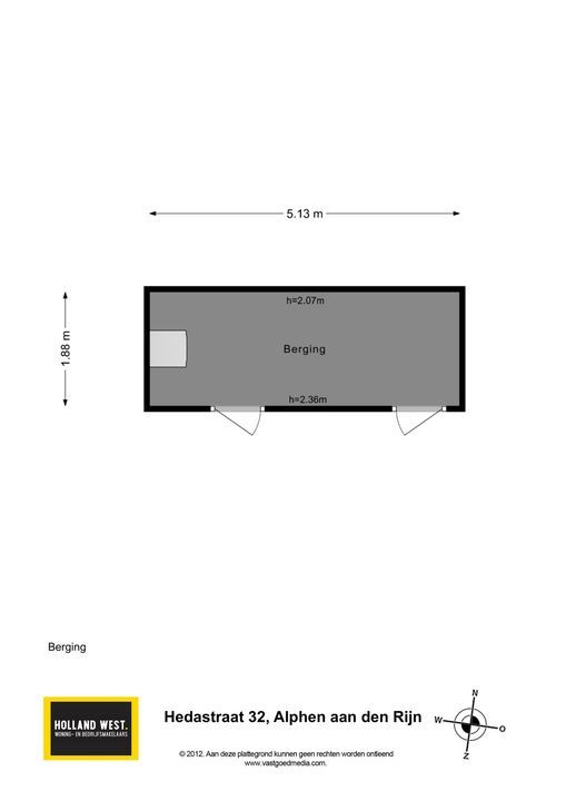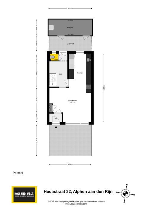 Achter de woning ligt de dubbele berging incl. aansluitingen wasmachine en droger met overstek, toegankelijk via de woning. Deze berging biedt veel mogelijkheden voor parkeren, hobby of opslag.