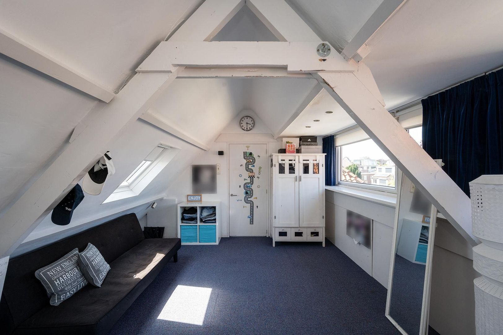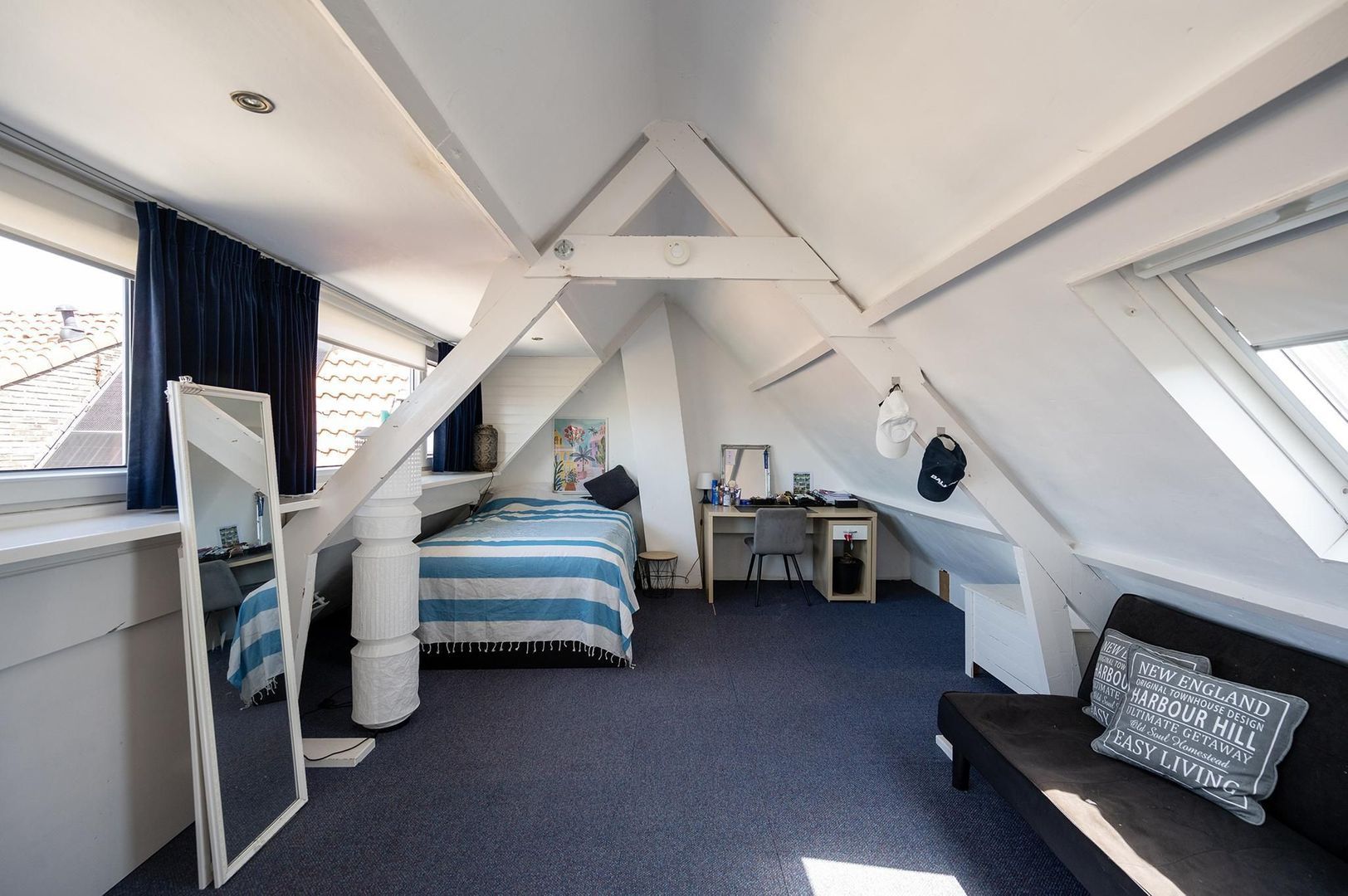 De tweede verdieping biedt een functionele overloop, waar zich de opstelling van zowel de wasmachine als de wasdroger bevindt, evenals de cv-installatie. Deze praktische ruimte zorgt ervoor dat al uw huishoudelijke apparatuur netjes is weggewerkt en gemakkelijk toegankelijk is. De derde slaapkamer op deze verdieping is vanwege de royale afmetingen bijna een studio te noemen. Deze kamer is voorzien van een dakkapel over de gehele breedte, wat niet alleen zorgt voor extra ruimte, maar ook voor een overvloed aan natuurlijk licht. Daarnaast zijn er Velux dakramen geïnstalleerd, waardoor de kamer nog lichter en luchtiger aanvoelt. De indelingsmogelijkheden zijn hier eindeloos; u kunt deze ruimte bijvoorbeeld inrichten als een luxe hoofdslaapkamer, een werkruimte, een hobbykamer of zelfs als een comfortabele logeerkamer. De combinatie van de ruime opzet en de vele lichtinval maakt deze verdieping tot een zeer aantrekkelijke en flexibele ruimte binnen de woning.