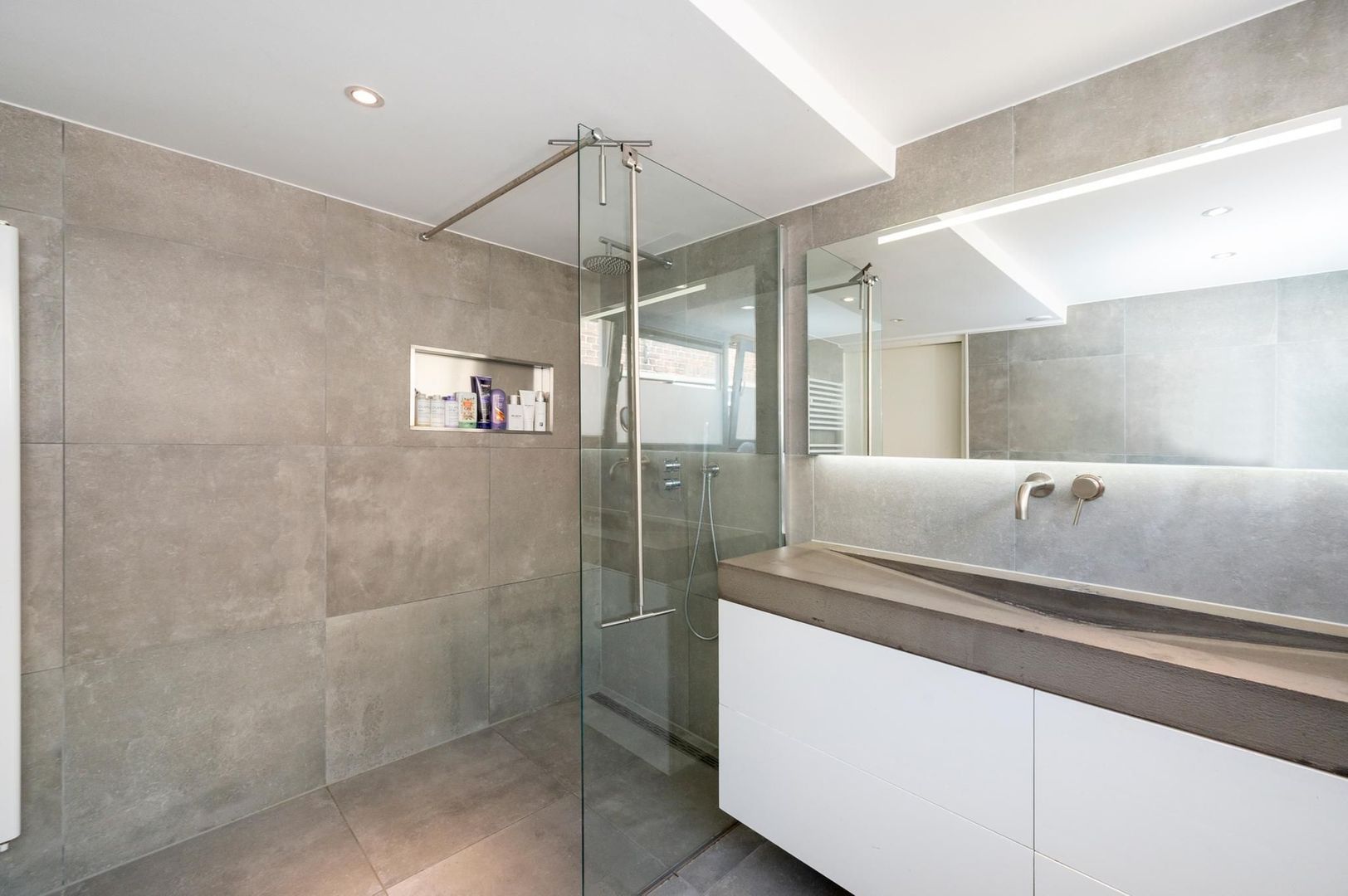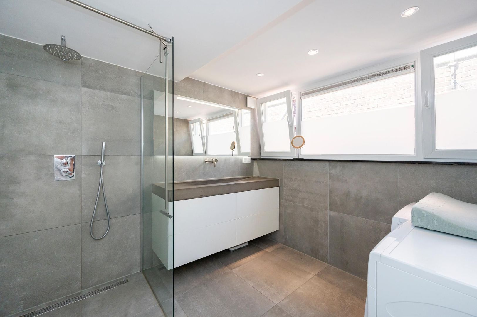 - Verzorgde badkamer met inloopdouche en dubbele wastafel in meubel