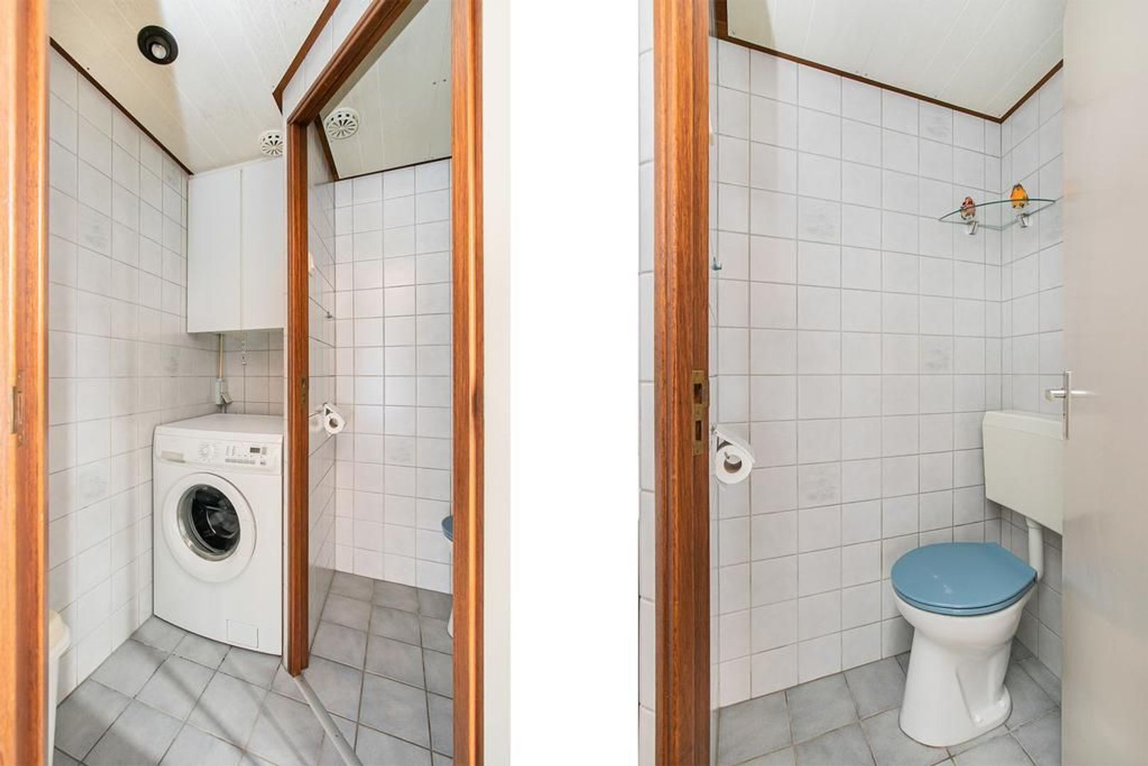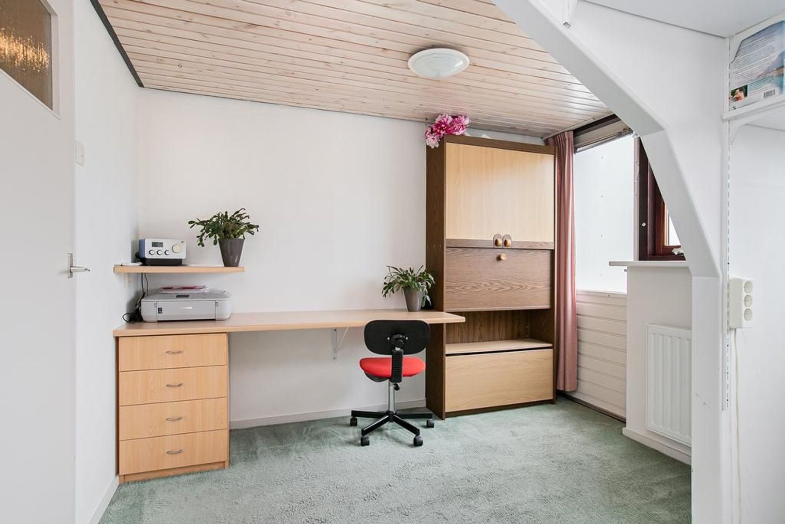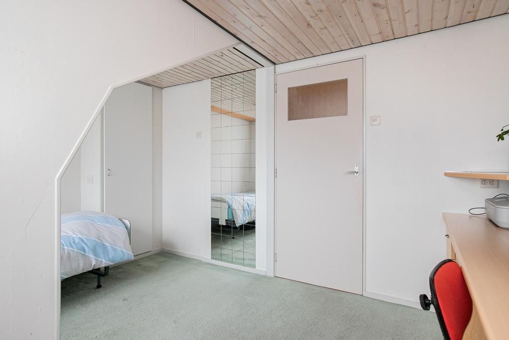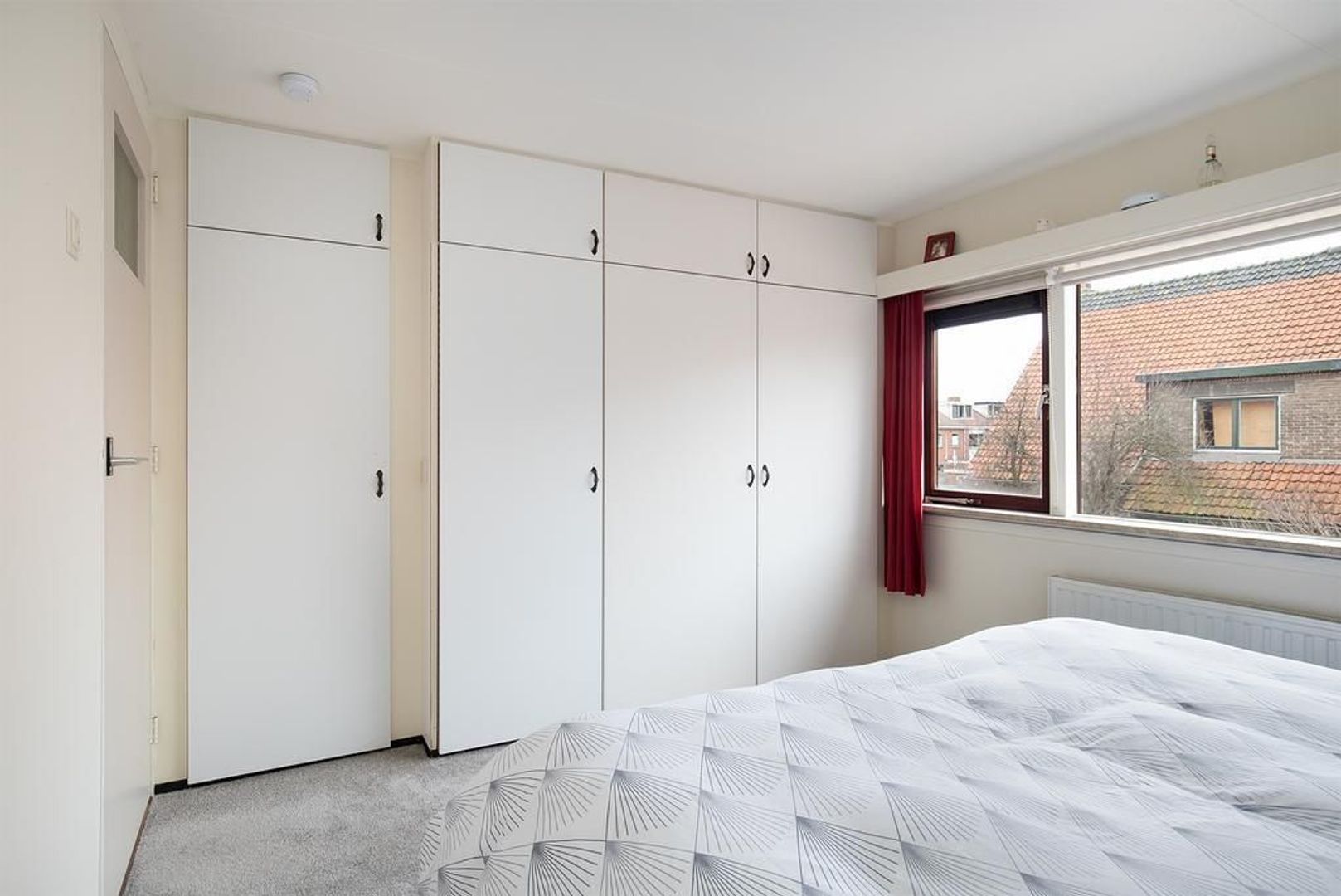 Overloop met grote vaste kastenwand, 2 royale slaapkamers (voorheen 3) waarvan de achterslaapkamer toegang geeft tot het platte dak. De voorslaapkamer heeft over de volle breedte een diepe inbouwkast. In het midden treft u de badkamer welke is voorzien van een 2e toilet, douchehoek en wastafel in meubel.