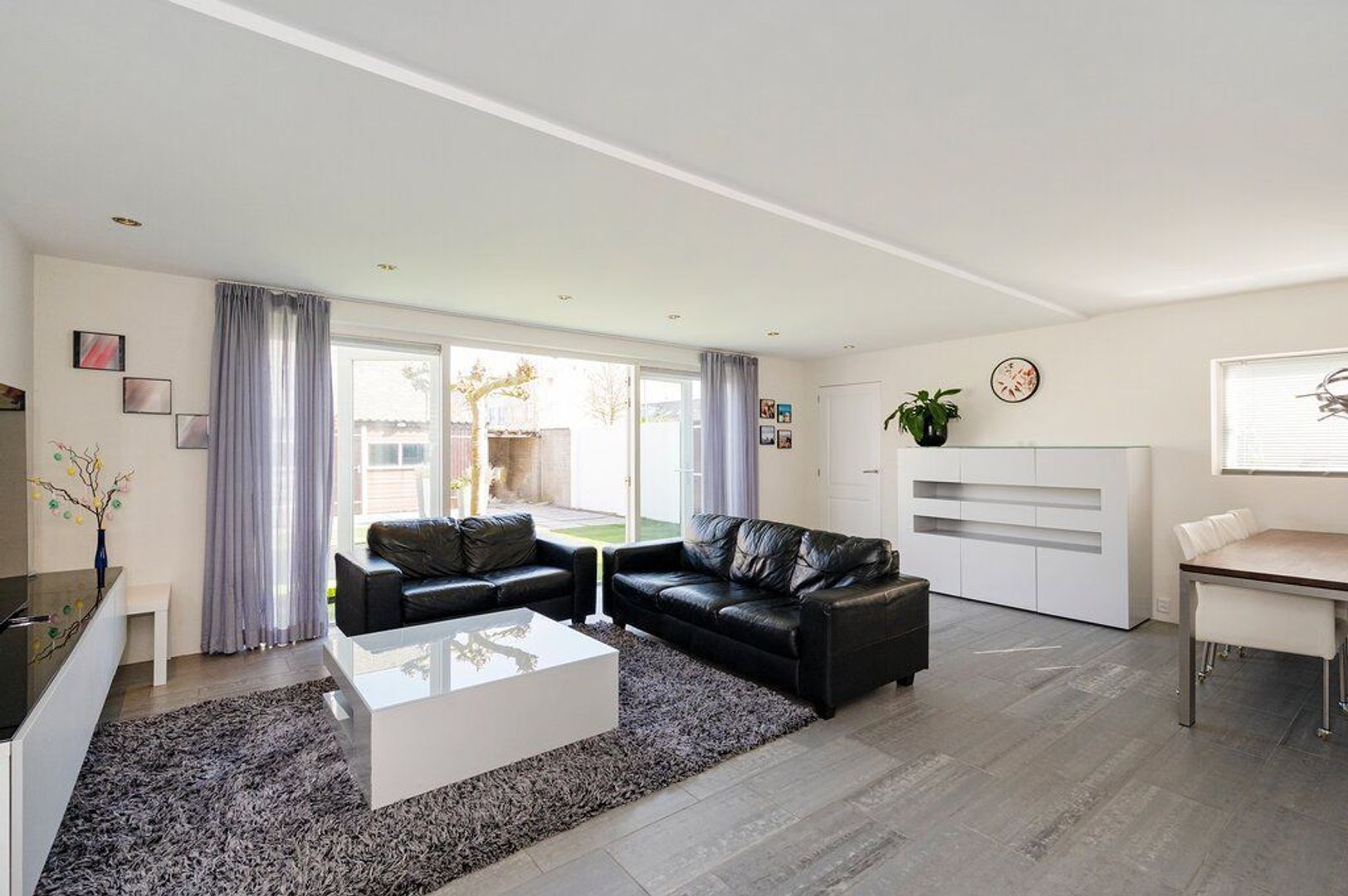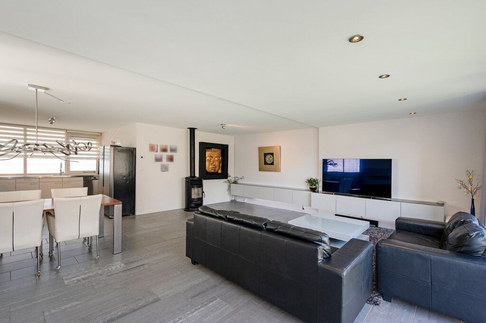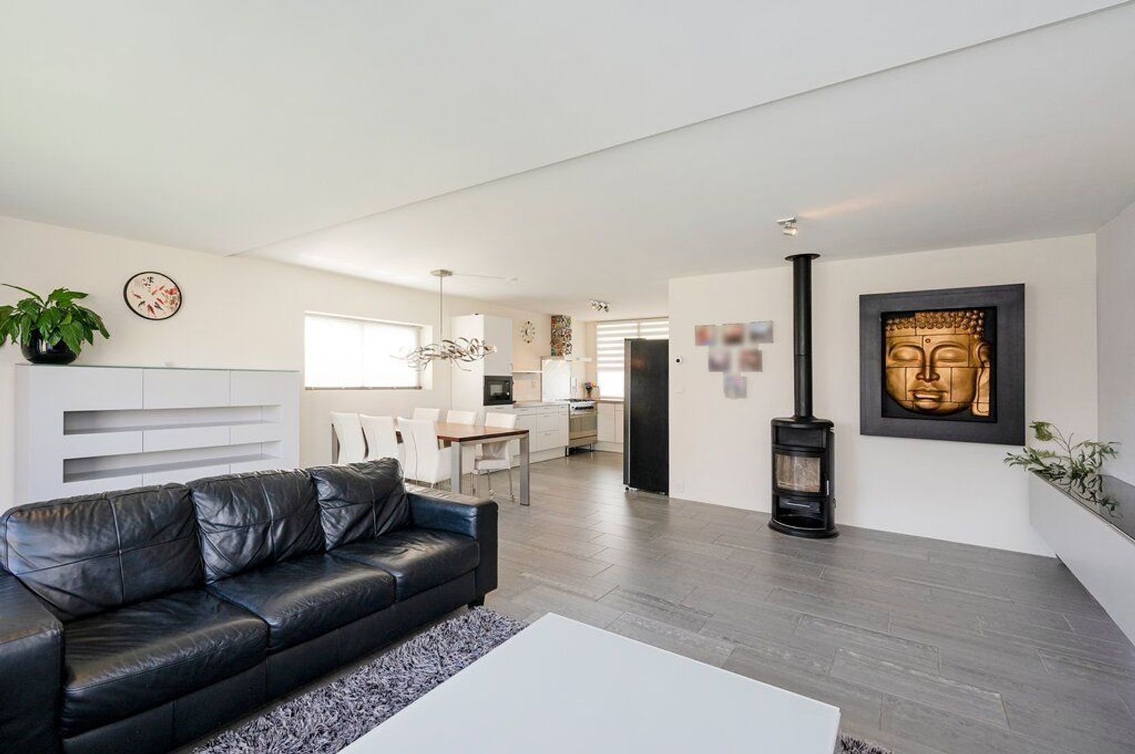 Aansluitend aan de keuken treft u de tuingerichte uitgebouwde woonkamer met grote openslaande deuren naar de tuin. Tevens is in de woonkamer een houtkachel gesitueerd wat voor een gezellige sfeer zorgt.